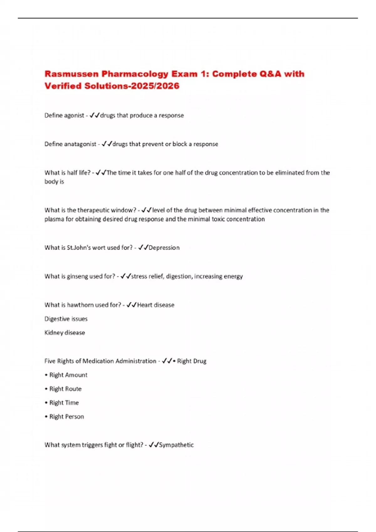 Rasmussen Pharmacology Exam 1: Complete Q&A with Verified Solutions-2025/2026
