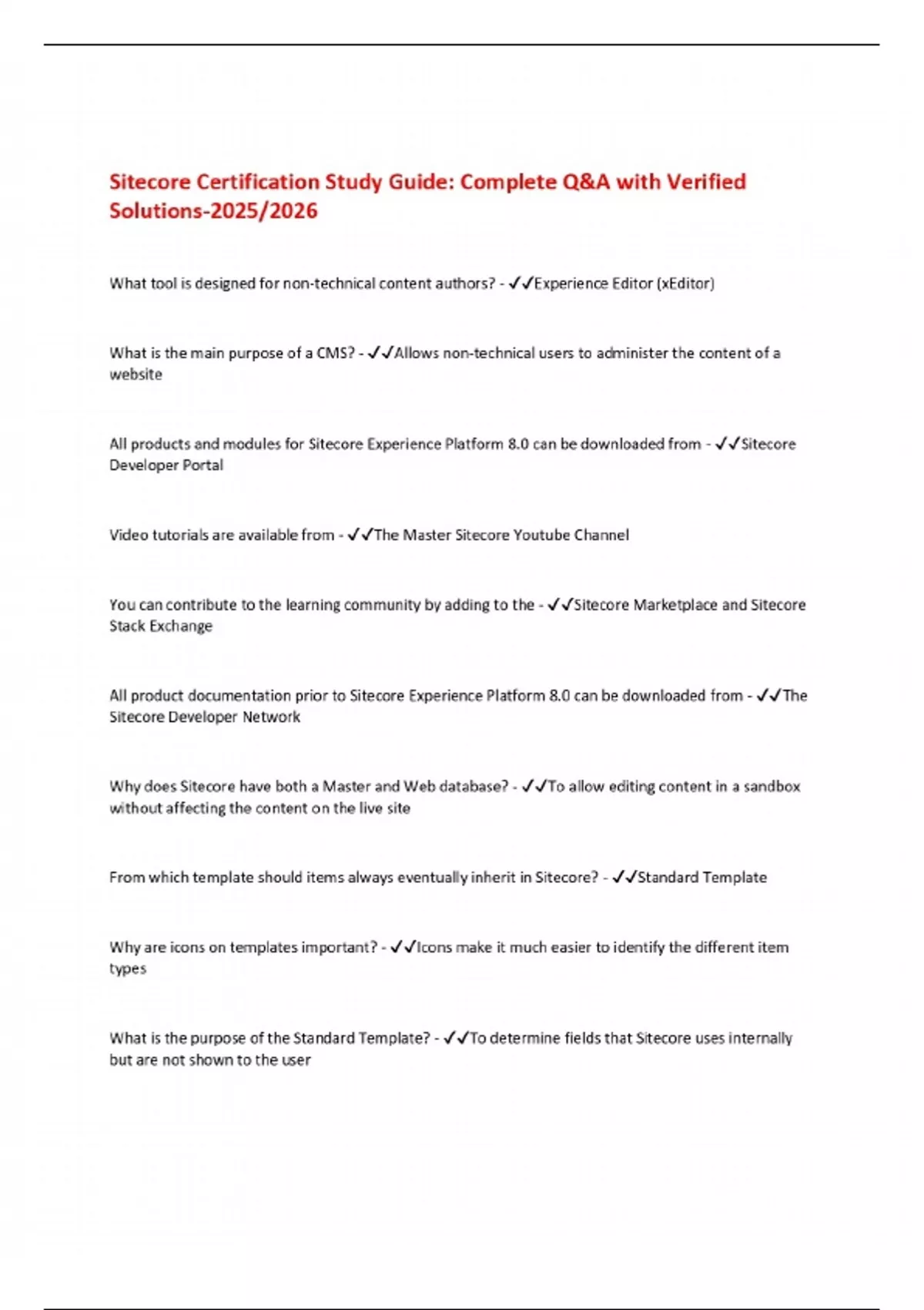 Sitecore Certification Study Guide: Complete Q&A with Verified Solutions-2025/2026