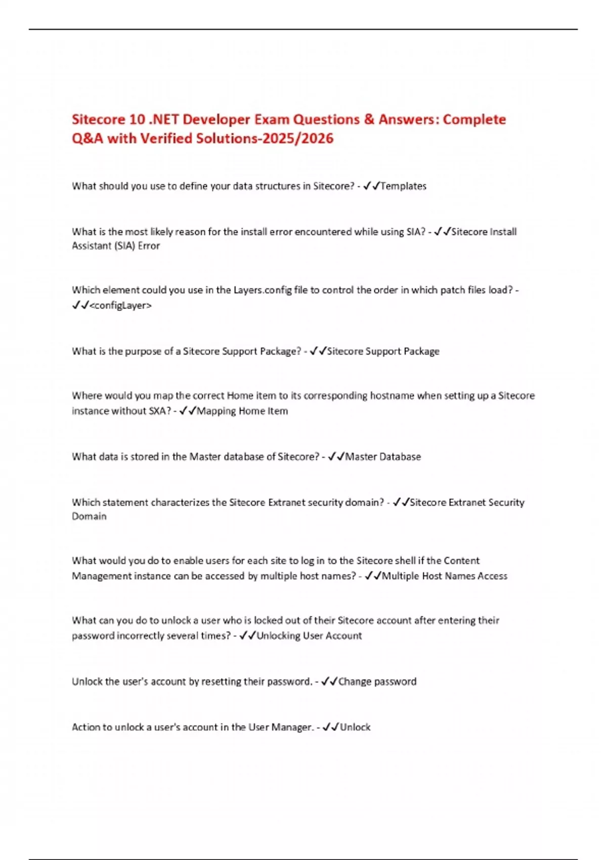 Sitecore 10 .NET Developer Exam Questions & Answers: Complete Q&A with Verified Solutions-2025/2026