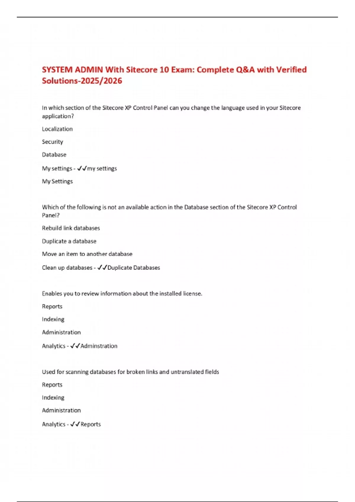 SYSTEM ADMIN With Sitecore 10 Exam: Complete Q&A with Verified Solutions-2025/2026