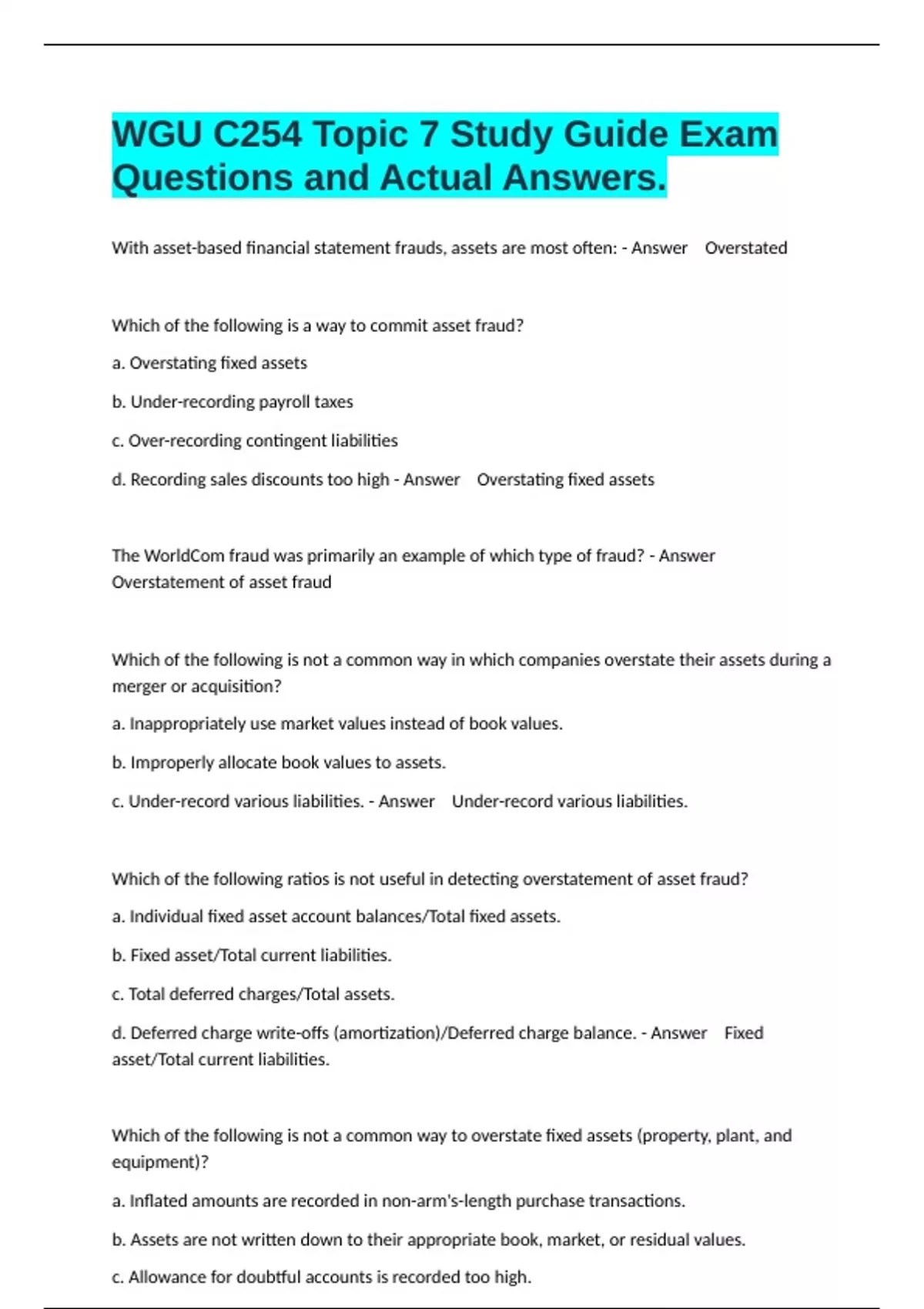 With asset-based financial statement frauds, assets are most often: - Answer Overstated