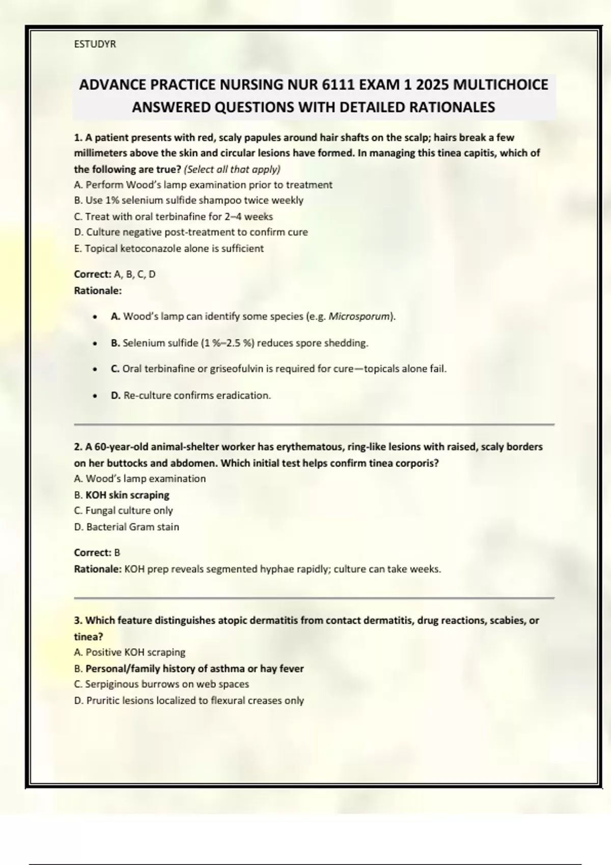 ANSWERED QUESTIONS WITH DETAILED RATIONALES