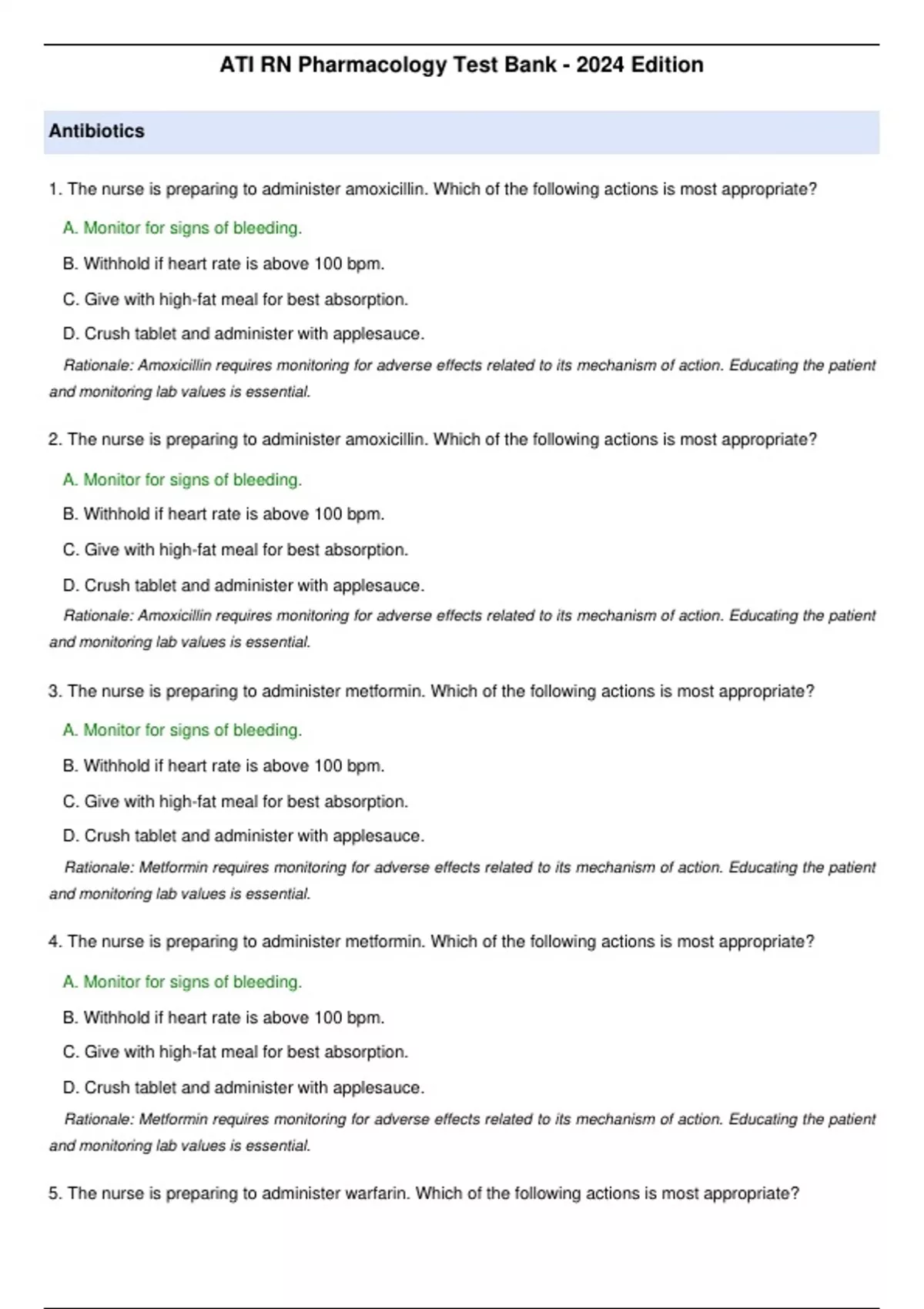 1. The nurse is preparing to administer amoxicillin. Which of the following actions is most appropriate?