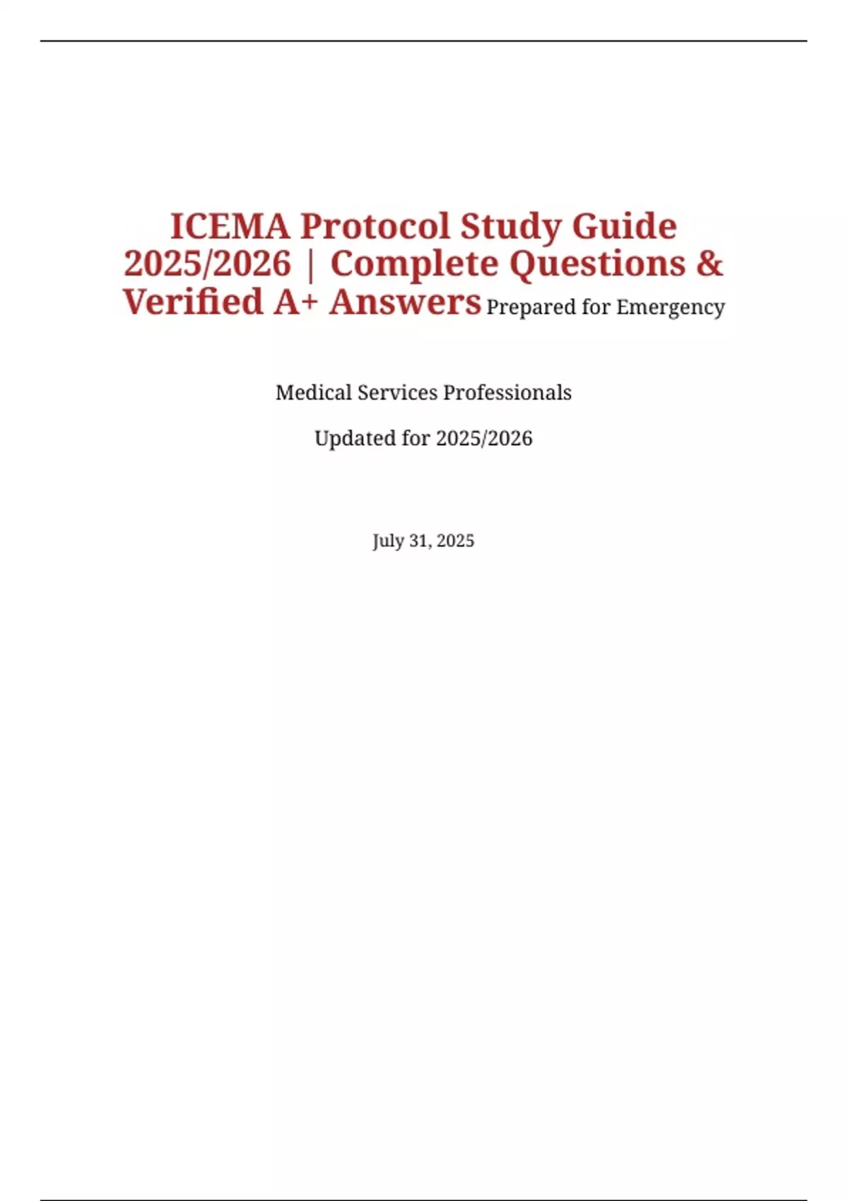 Verified A+ Answers Prepared for Emergency