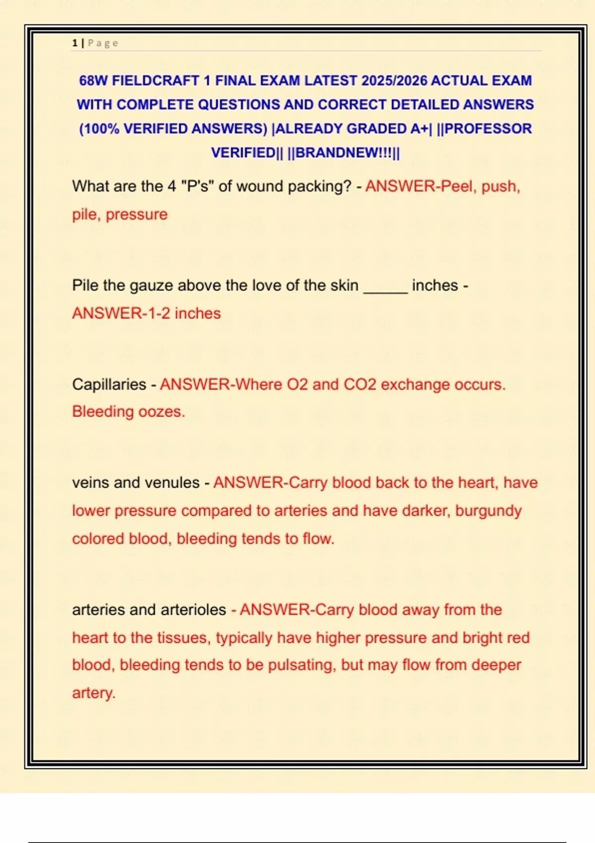 68W FIELDCRAFT 1 FINAL EXAM LATEST 2025/2026 ACTUAL EXAM