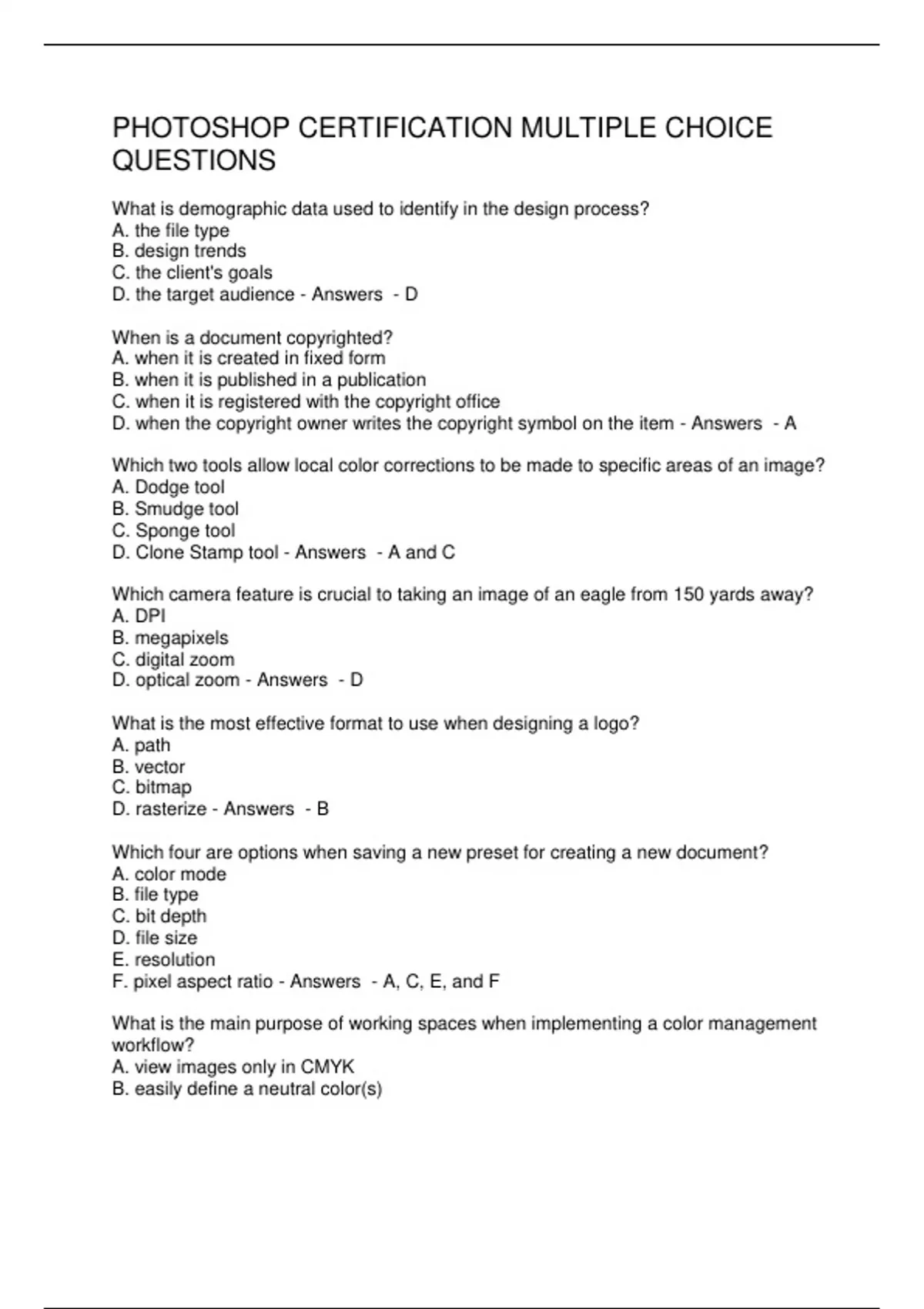 PHOTOSHOP CERTIFICATION MULTIPLE CHOICE