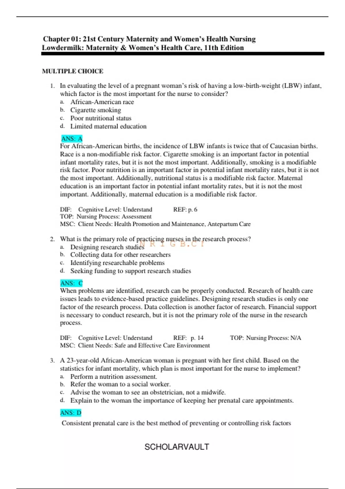 Maternity and Women’s Health Care – Test Bank (Lowdermilk, 11th Edition) | Nursing Education Resource – 2025 | Complete Exam Questions and Answers ISBN: 9780323390194;