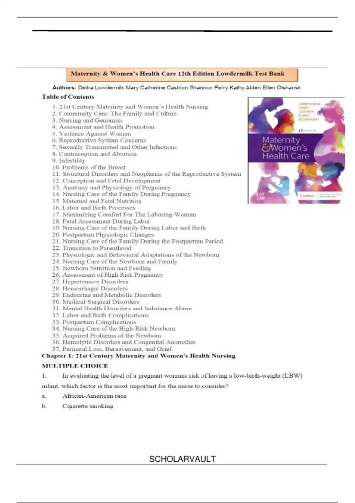 Maternity and Womens Health Care 12th Edition Lowdermilk Test Bank ISBN: 9780323556293 Verified Questions and Answers