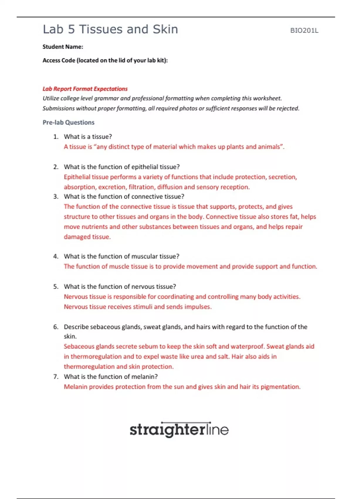 BIO 201L Lab 5: Tissues and Skin | Straighterline