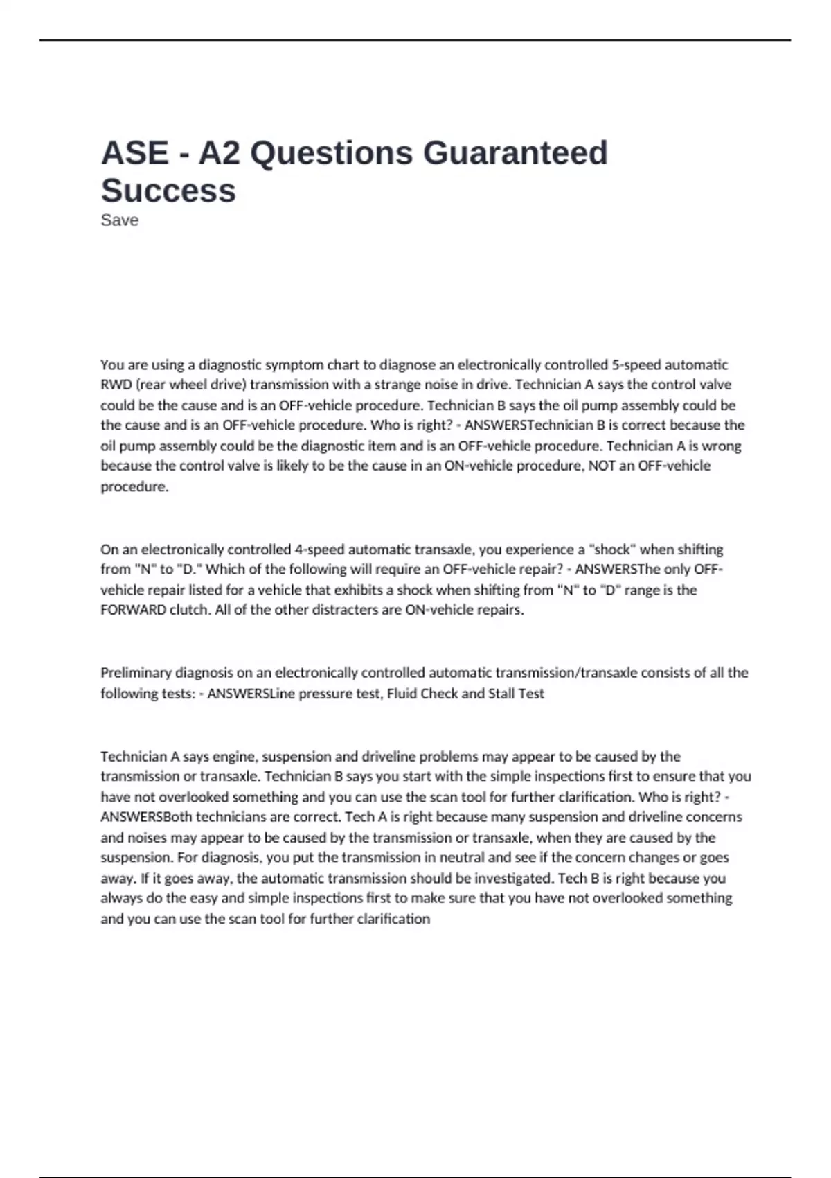 transmission or transaxle. Technician B says you start with the simple inspections first to ensure that you