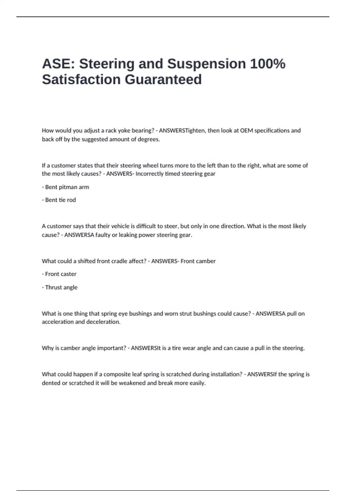 ASE: Steering and Suspension 100% Satisfaction Guaranteed