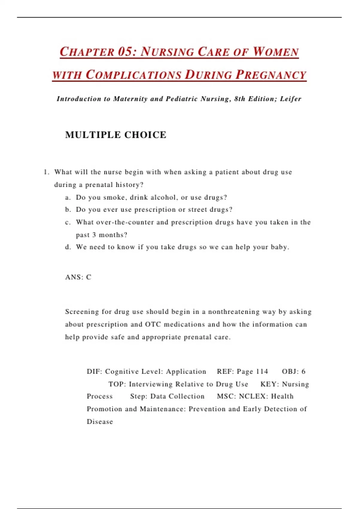 TOP: Interviewing Relative to Drug Use KEY: Nursing