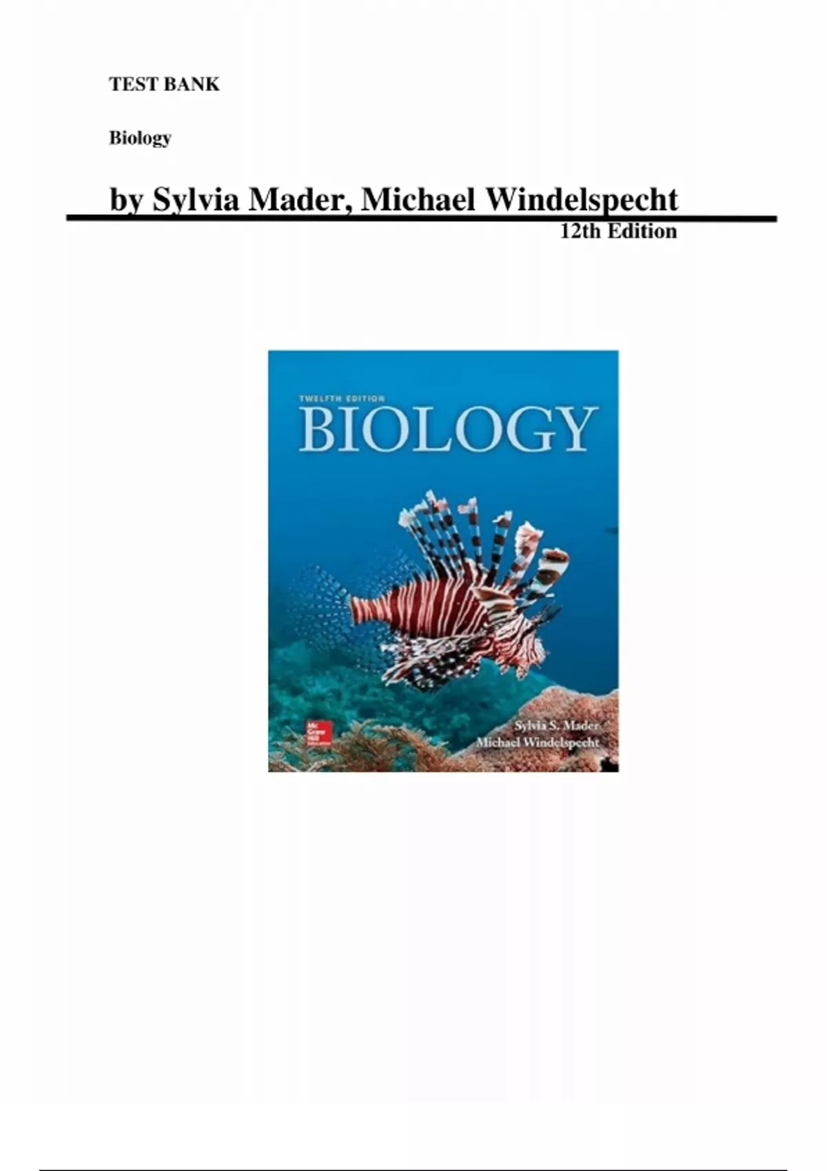 Biology 12th Edition - Test Bank by Sylvia Mader, Michael Windelspecht |All Chapters