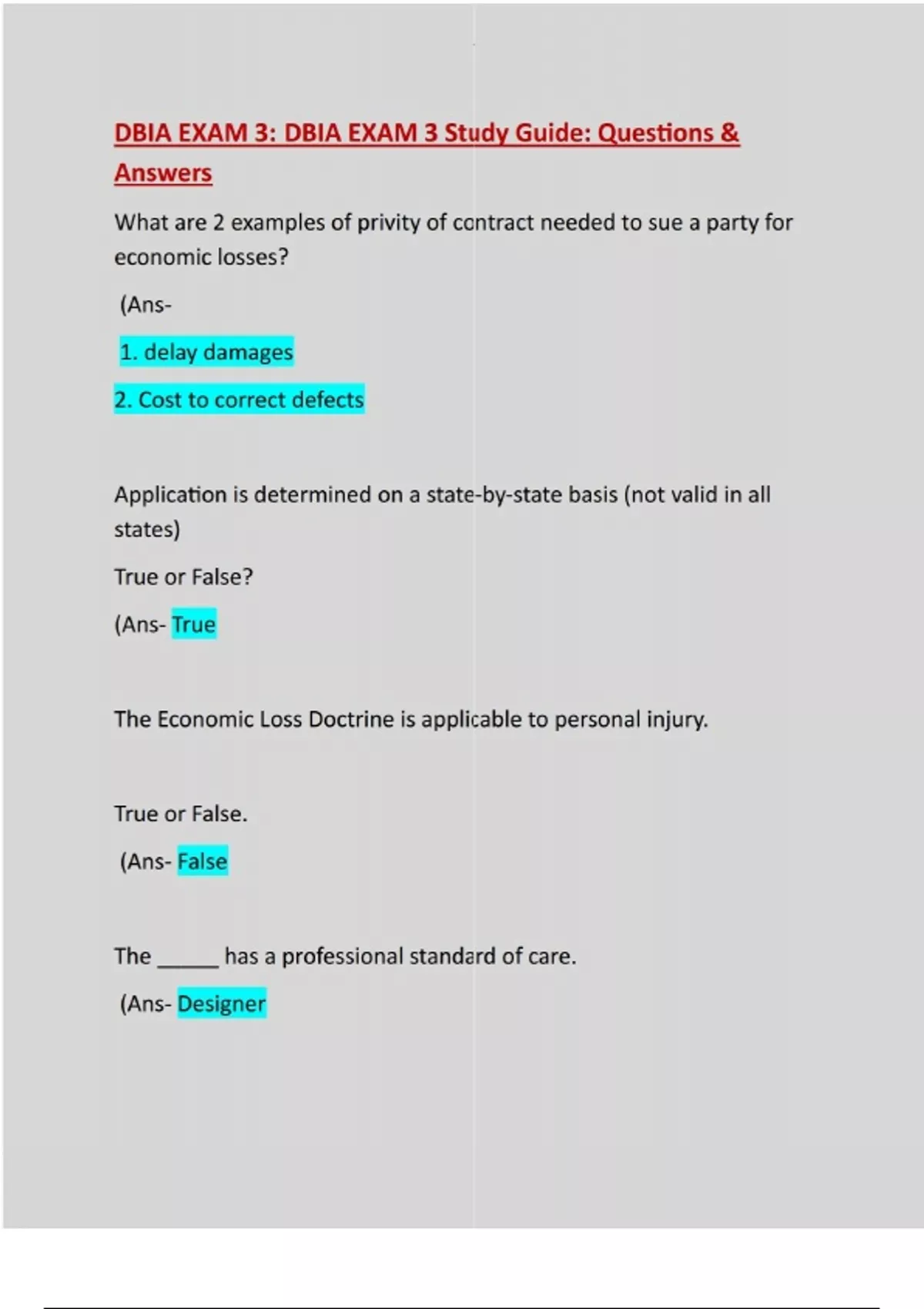 DBIA EXAM 3: DBIA EXAM 3 Study Guide: Questions & Answers: Updated Solution