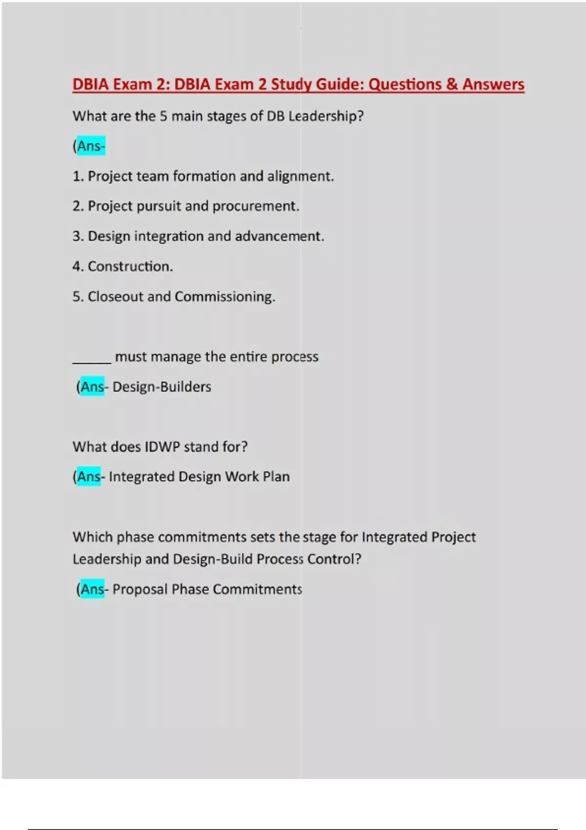 DBIA Exam 2: DBIA Exam 2 Study Guide: Questions & Answers: Guaranteed A+ Guide: Updated