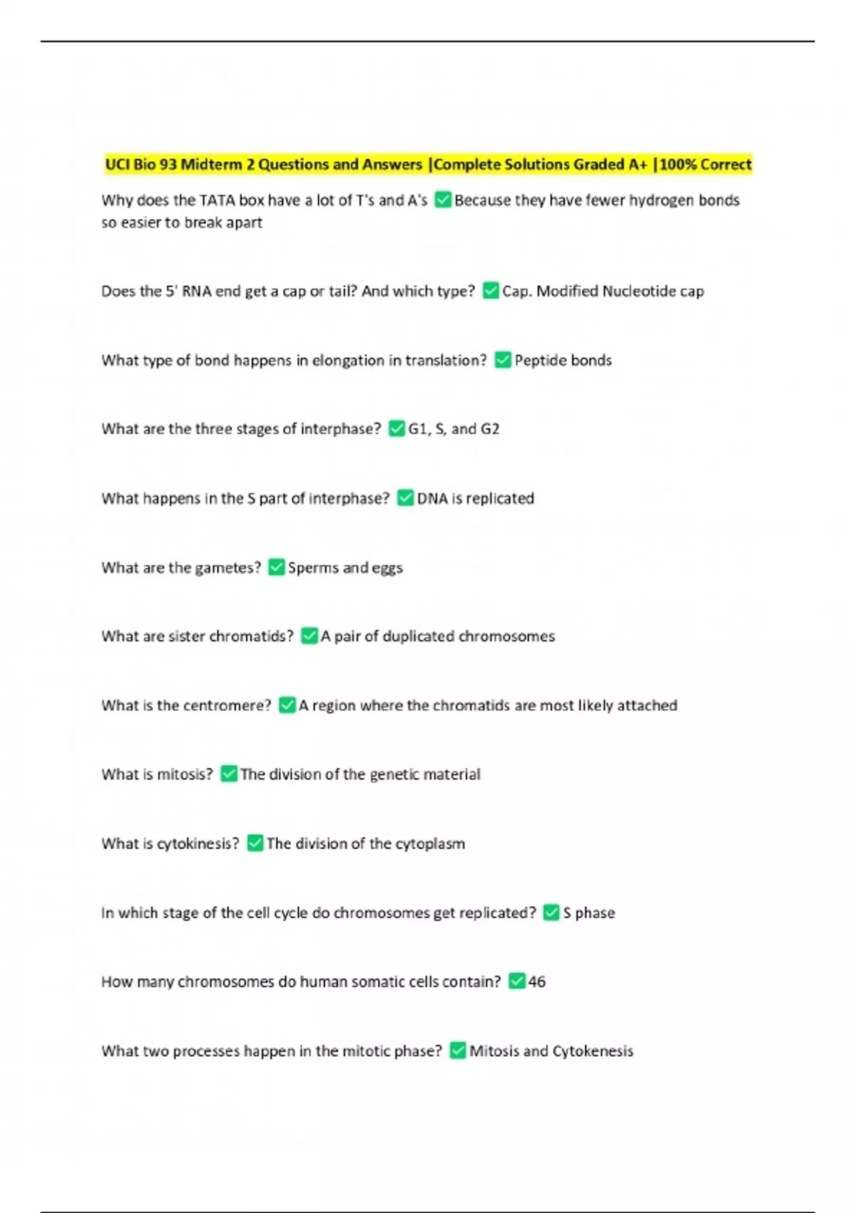 UCI Bio 93 Midterm 2 Questions and Answers |Complete Solutions Graded A+ |100% Correct