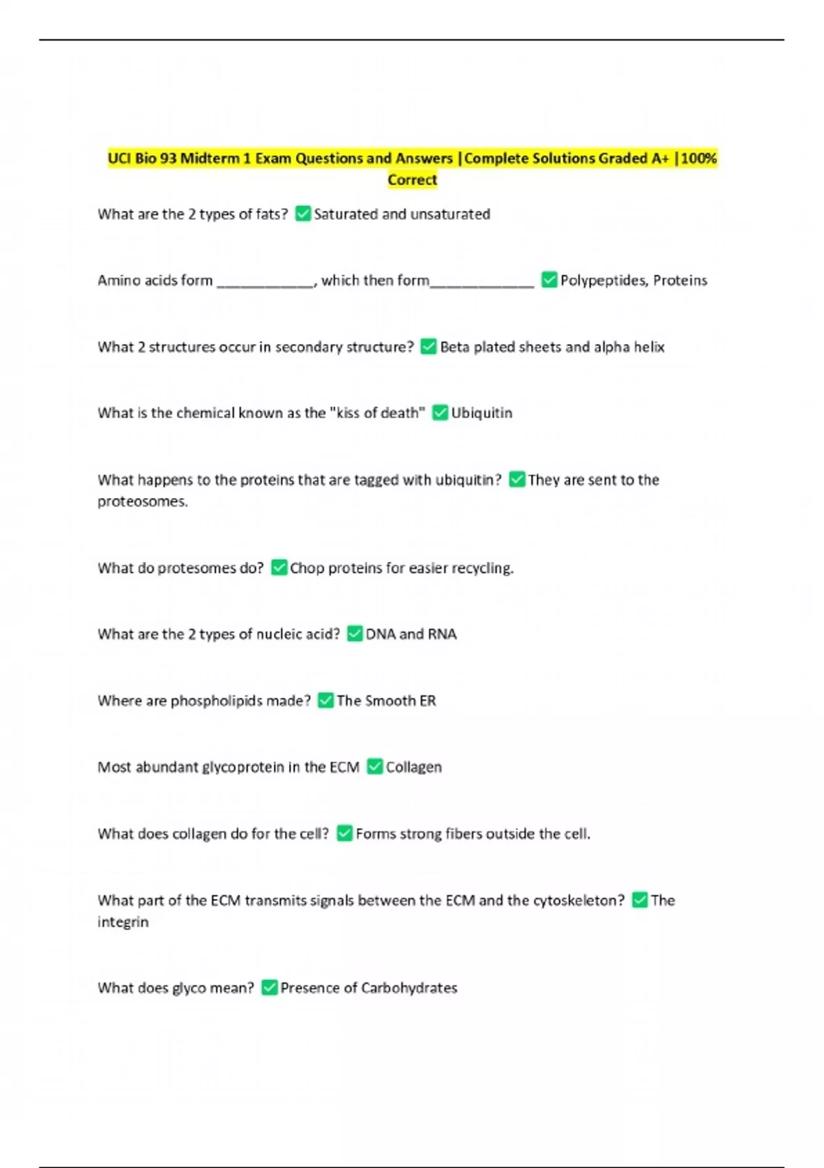 UCI Bio 93 Midterm 1 Exam Questions and Answers |Complete Solutions Graded A+ |100% Correct