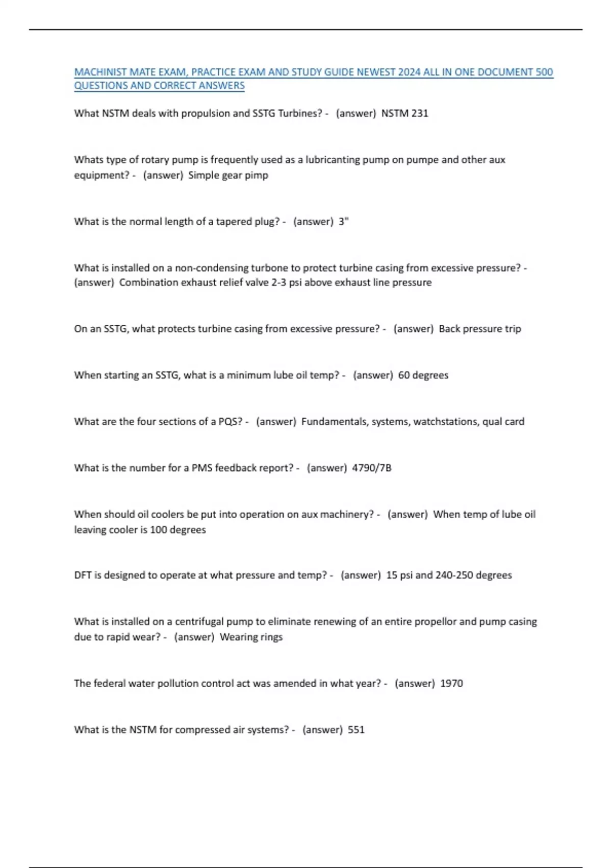 MACHINIST MATE EXAM, PRACTICE EXAM AND STUDY GUIDE NEWEST 2024 ALL IN ONE DOCUMENT 500