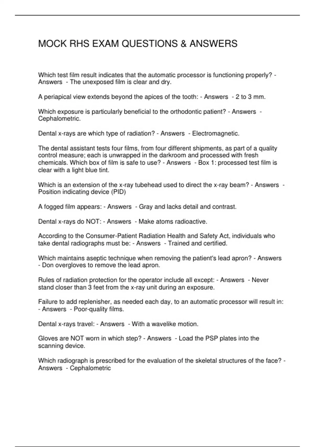 MOCK RHS EXAM QUESTIONS & ANSWERS