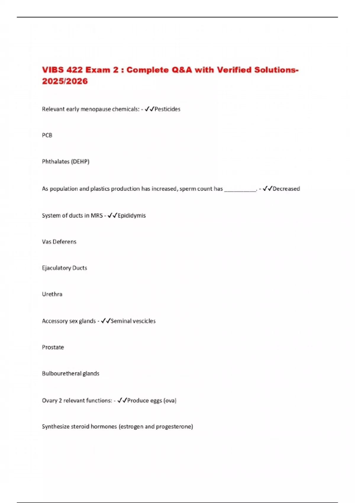 VIBS 422 Exam 2 : Complete Q&A with Verified Solutions 2025/2026