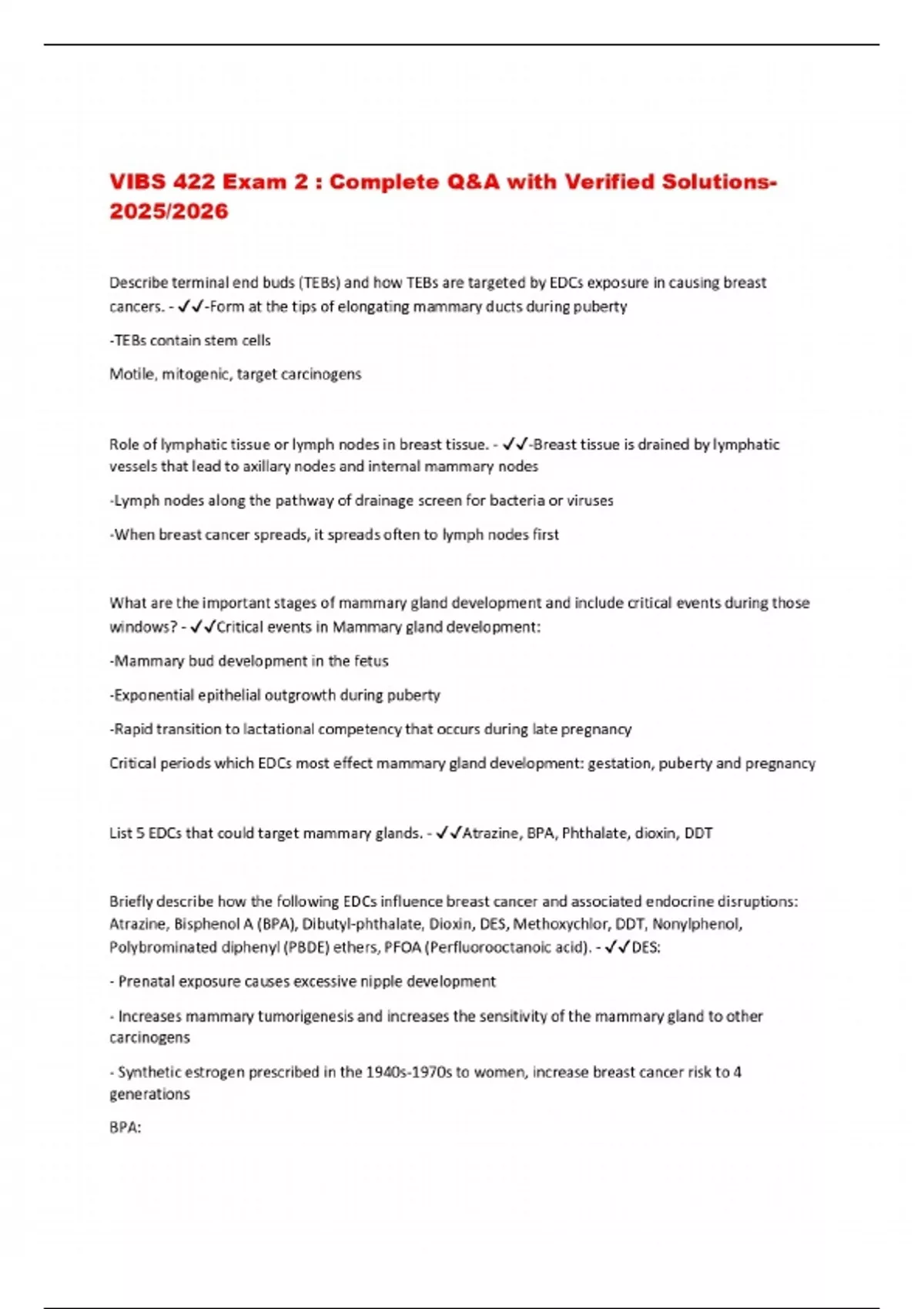 VIBS 422 Exam 2 : Complete Q&A with Verified Solutions 2025/2026