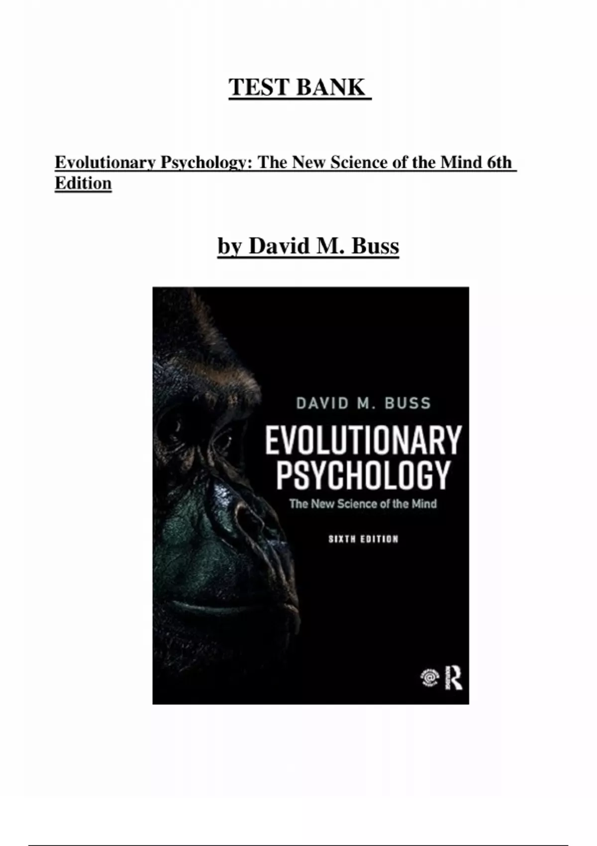 Test Bank for Evolutionary Psychology, 6th Edition by David M. Buss |All Chapters