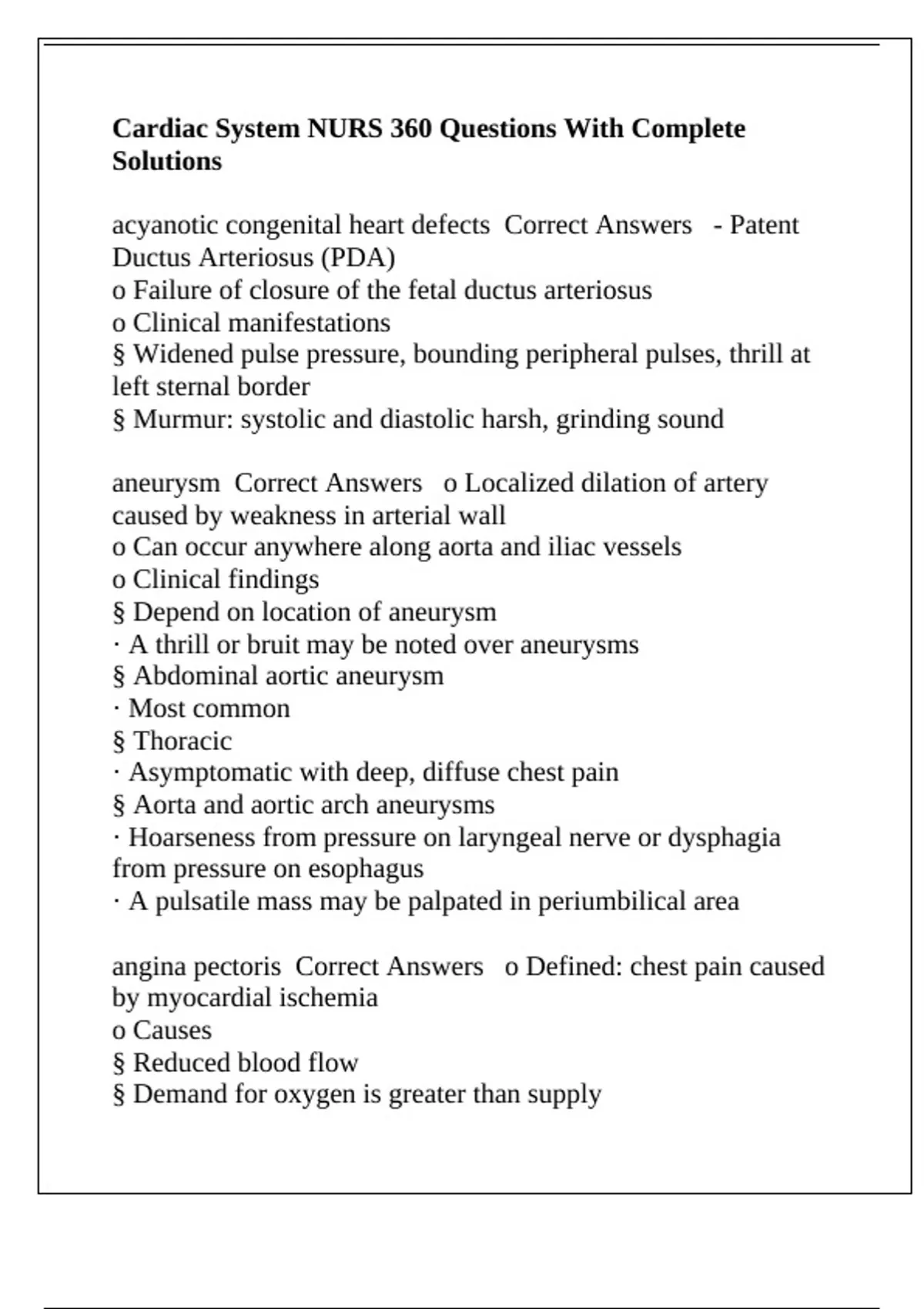 Cardiac System NURS 360 Questions With Complete Solutions