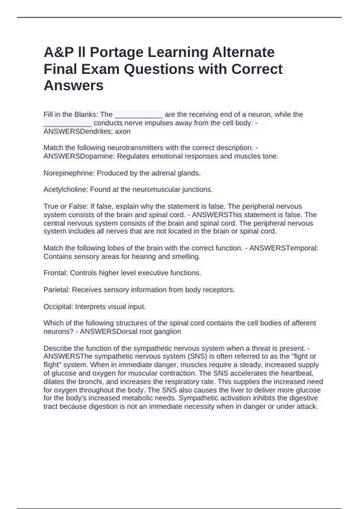 system consists of the brain and spinal cord. - ANSWERSThis statement is false. The