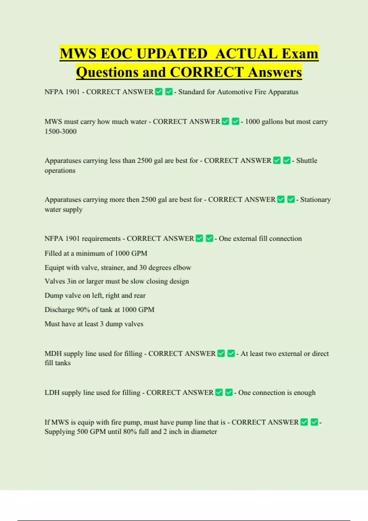 NFPA 1901 - CORRECT ANSWER - Standard for Automotive Fire Apparatus