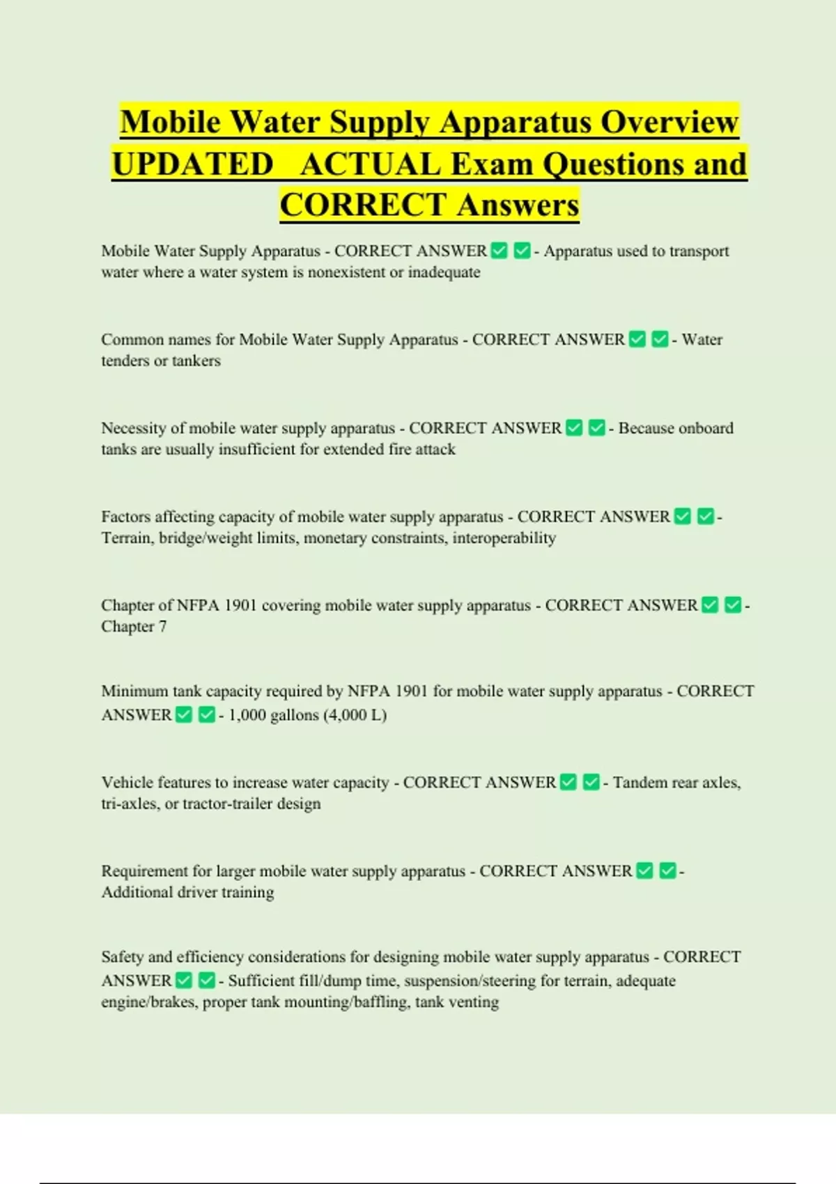 Common names for Mobile Water Supply Apparatus - CORRECT ANSWER - Water