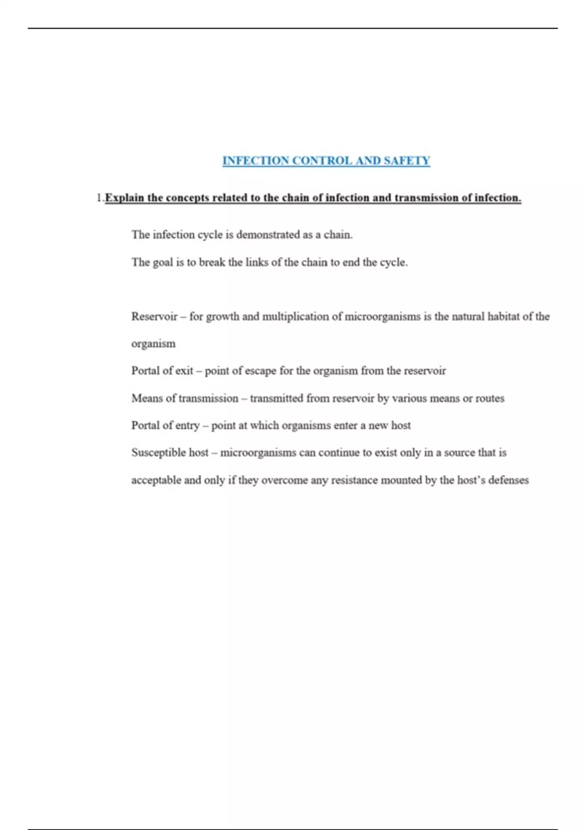 INFECTION CONTROL AND SAFETY