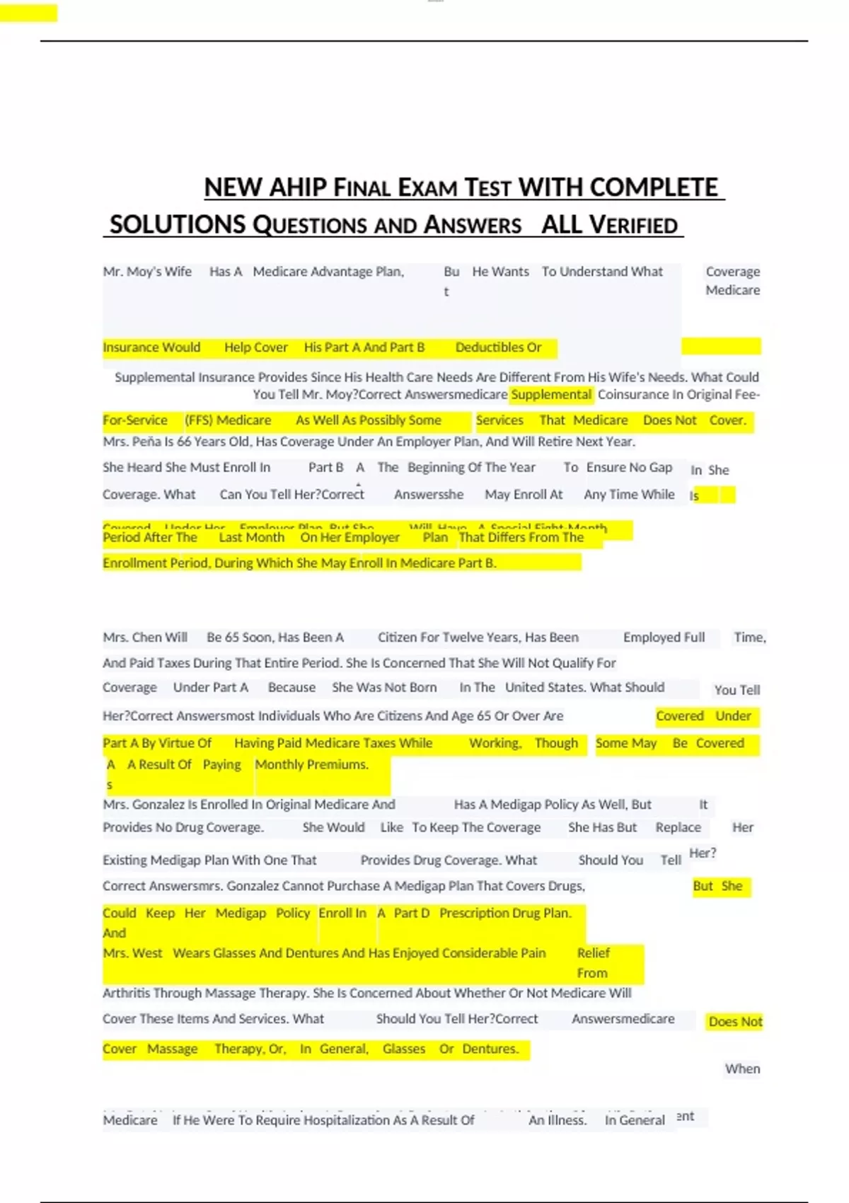 NEW AHIP FINAL EXAM TEST WITH COMPLETE