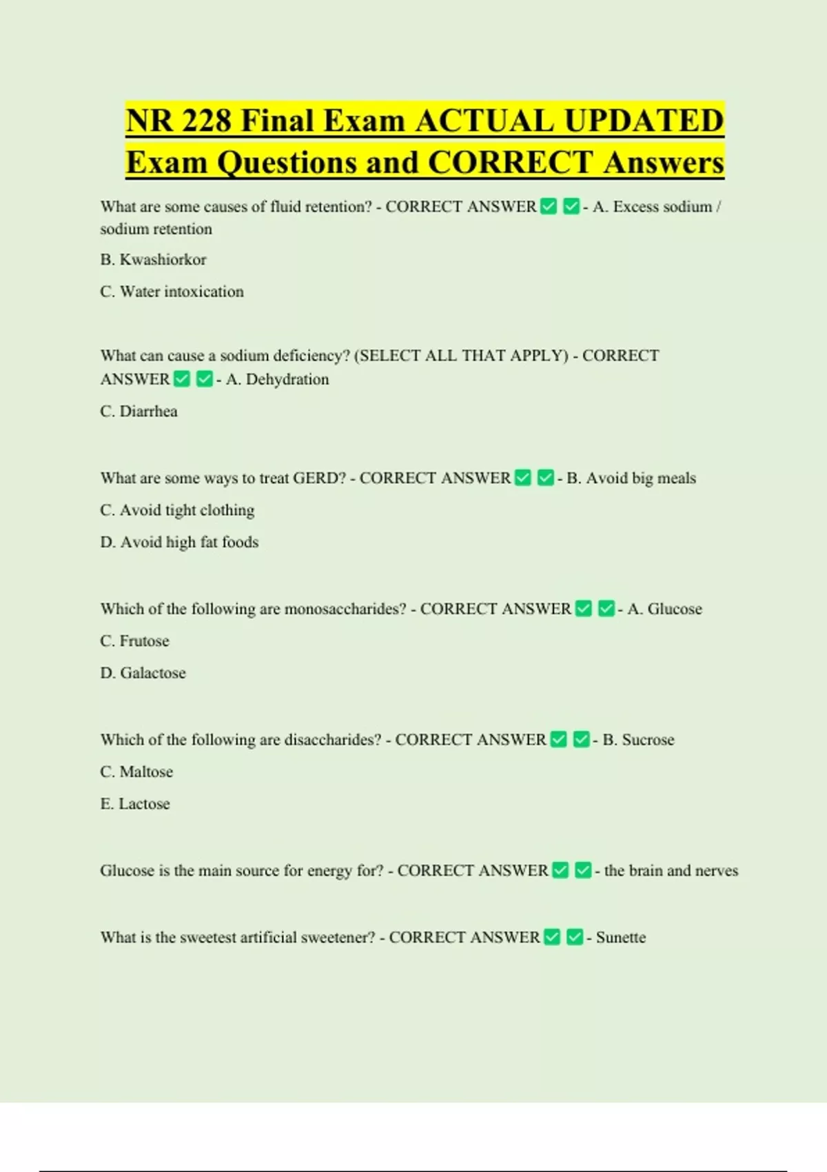 What are some causes of fluid retention? - CORRECT ANSWER - A. Excess sodium /