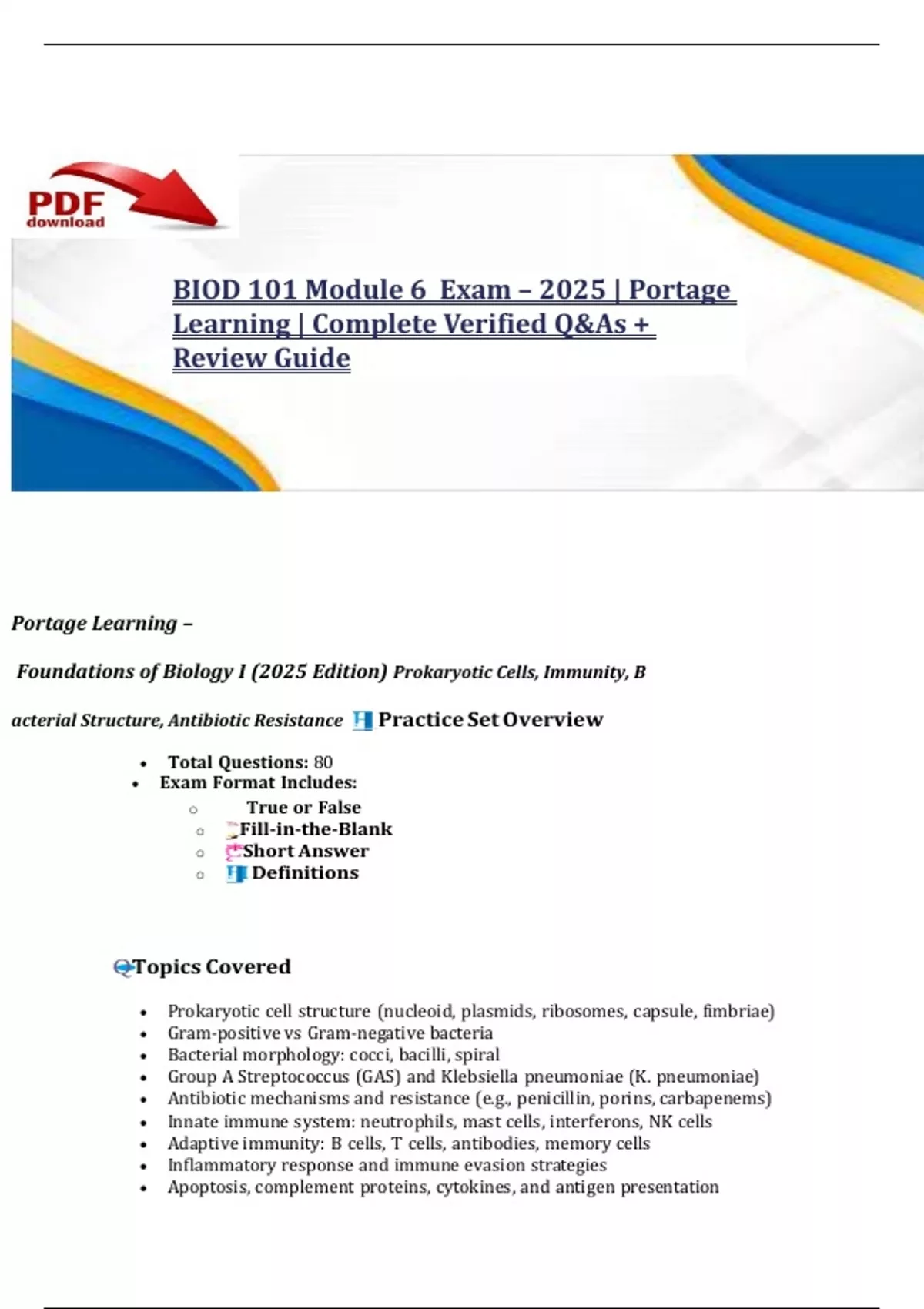 , BIOD 101 Module 6 Exam – 2025 | Portage Learning |