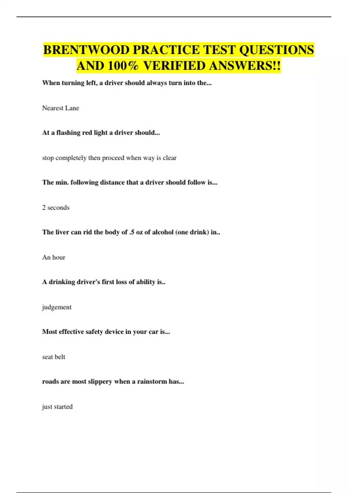 BRENTWOOD PRACTICE TEST QUESTIONS