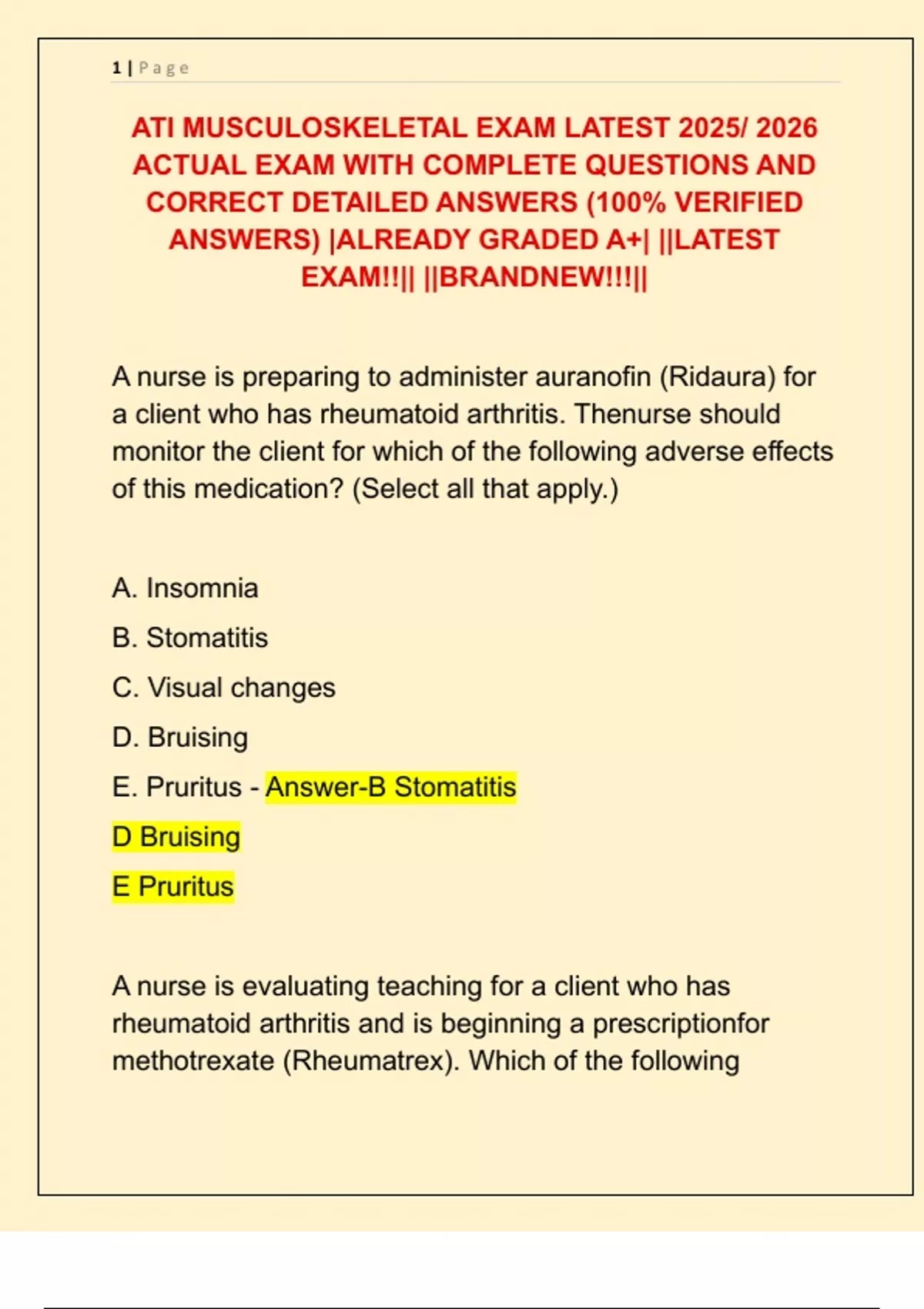 ATI MUSCULOSKELETAL EXAM LATEST 2025/ 2026