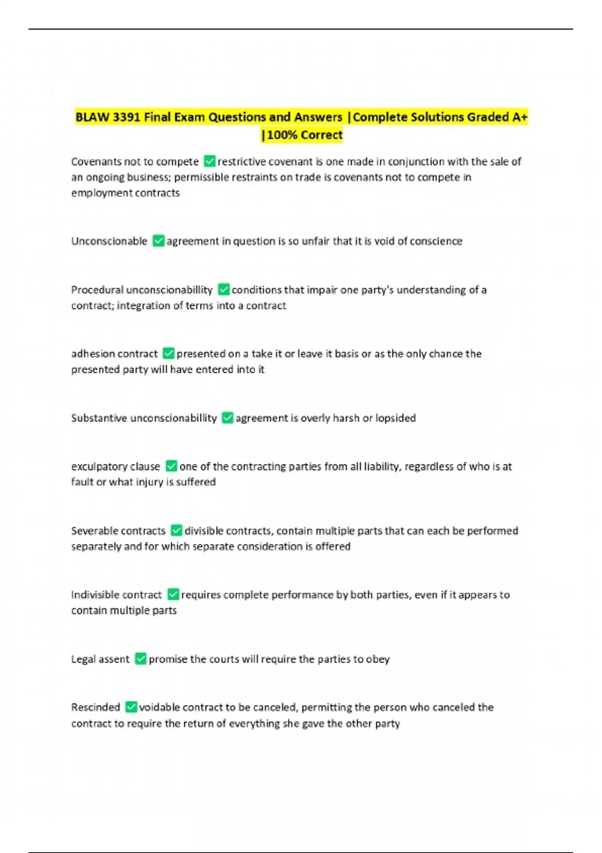 blaw 3391 final exam questions and answers comple