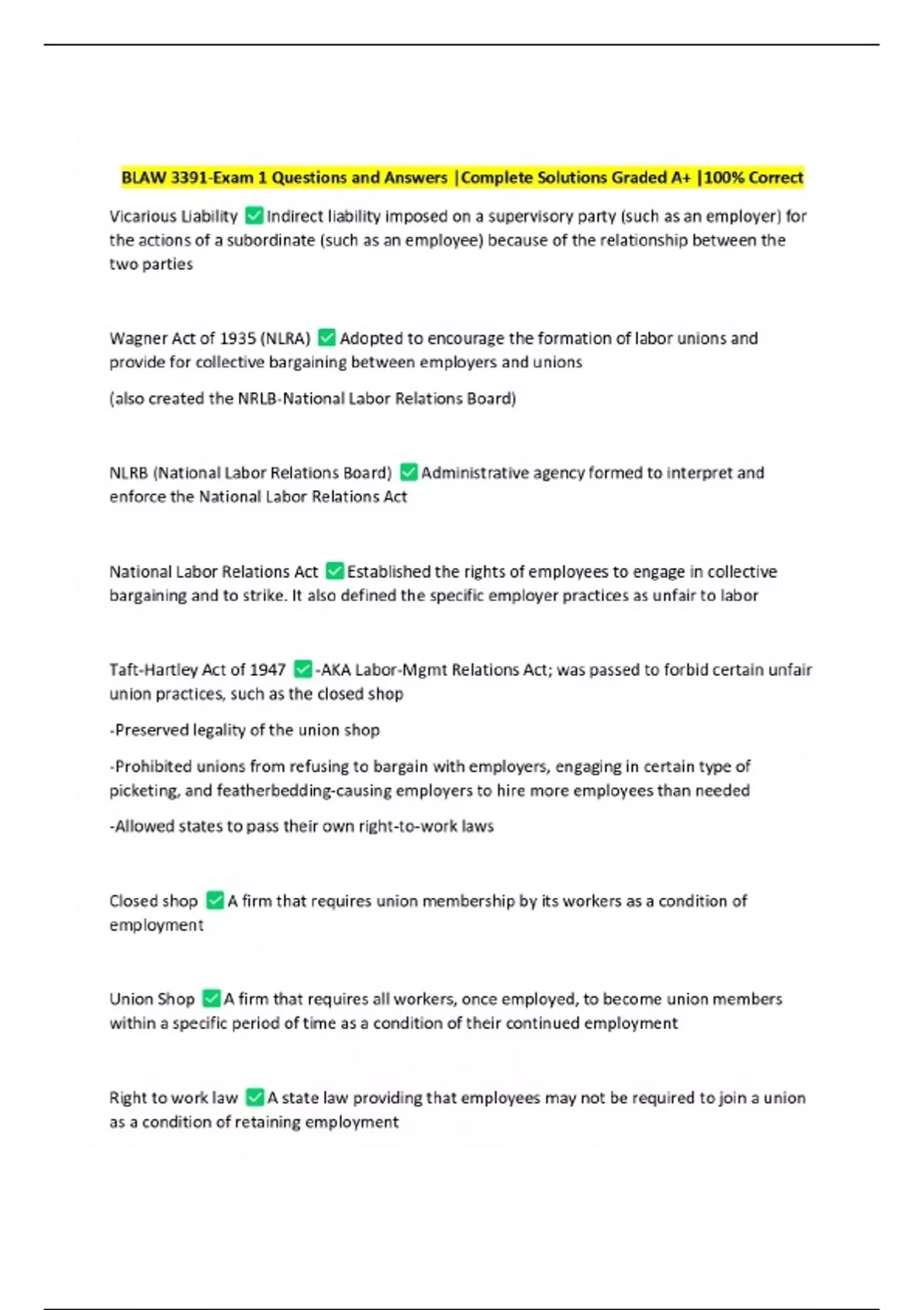 PACKAGE-::BLAW 3391 EXAMS WITH CORRECT ANSWERS