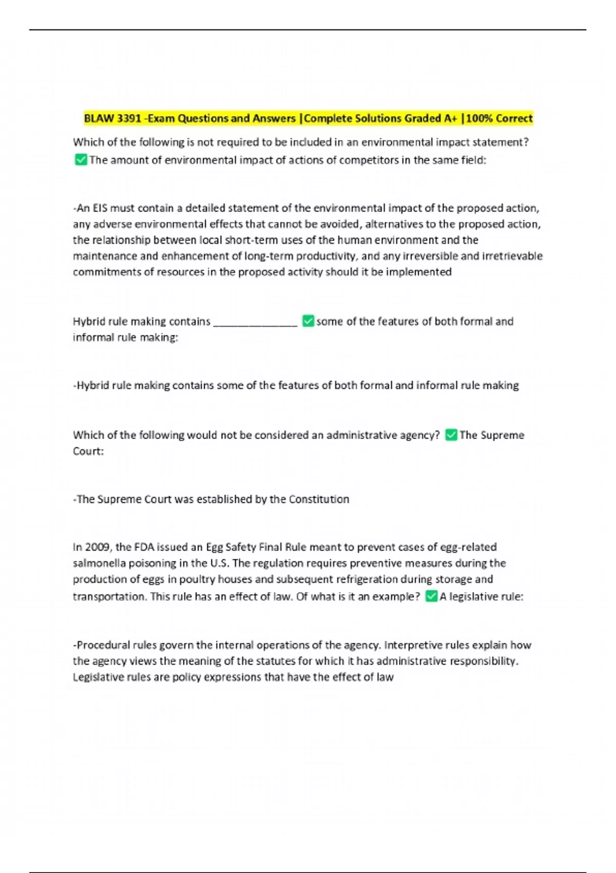 PACKAGE-::BLAW 3391 EXAMS WITH CORRECT ANSWERS