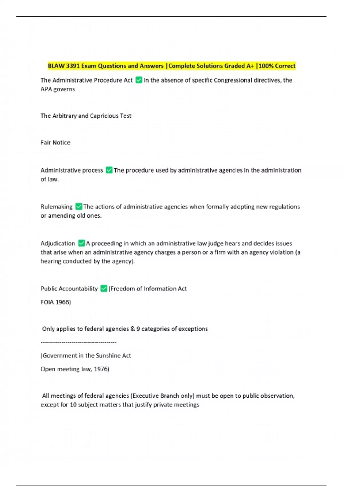 blaw 3391 exam questions and answers complete sol