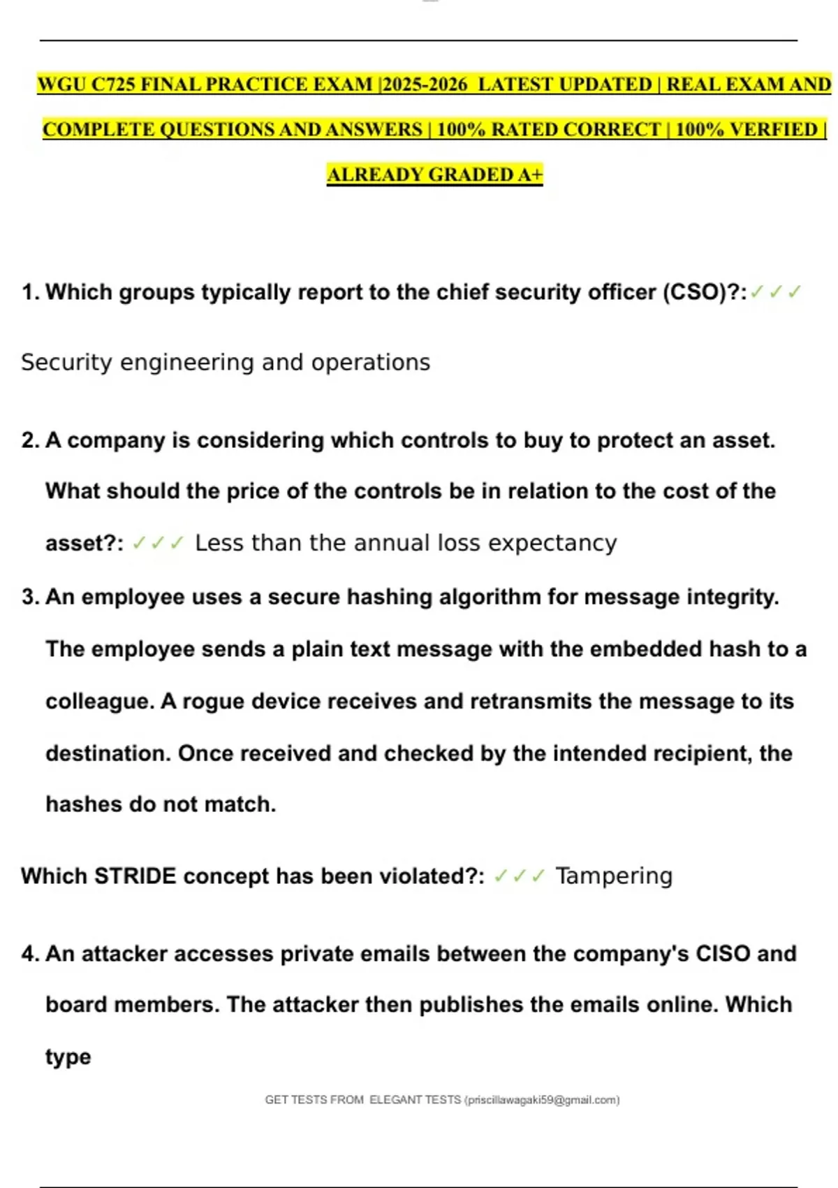 of an attack is this, according to the STRIDE model?: ✓✓✓ Information