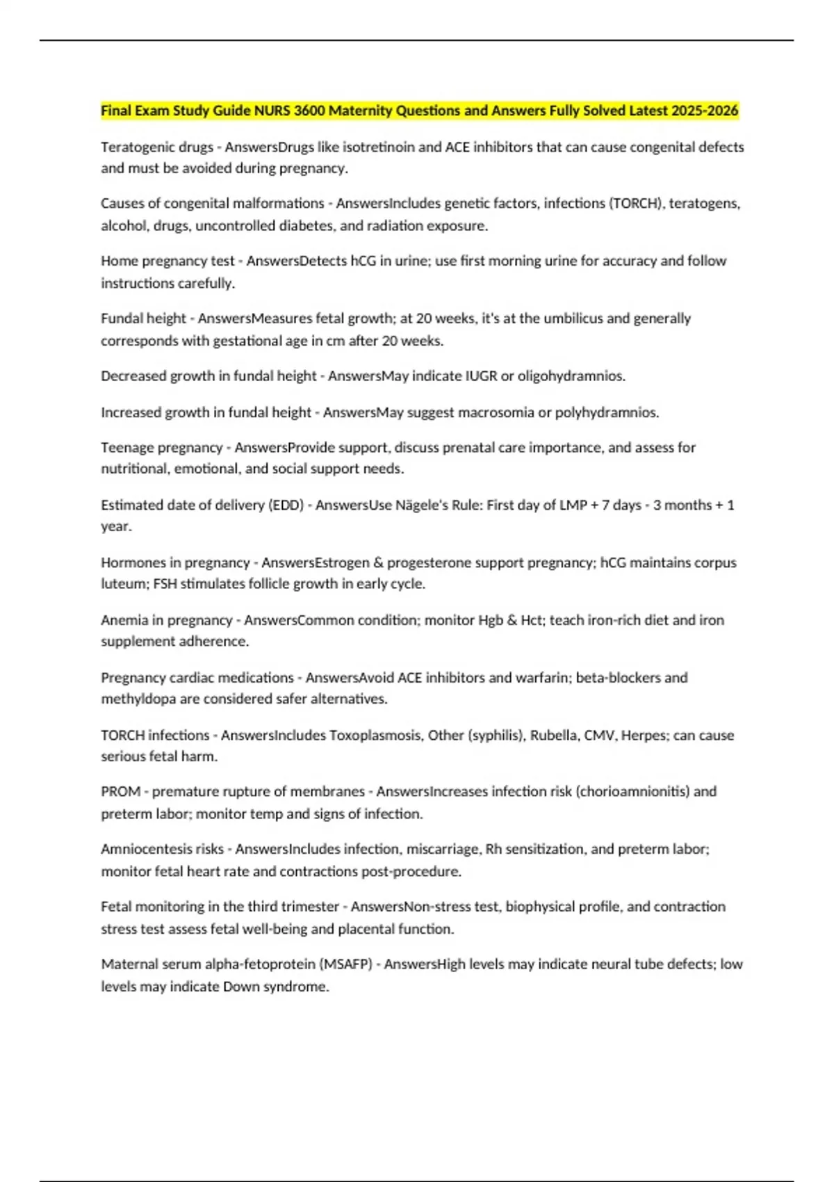 Causes of congenital malformations - AnswersIncludes genetic factors, infections (TORCH), teratogens,