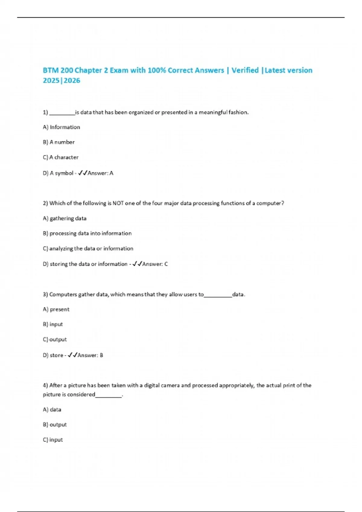 BTM 200 Chapter 2 Exam with 100% Correct Answers | Verified |Latest version 2025|2026