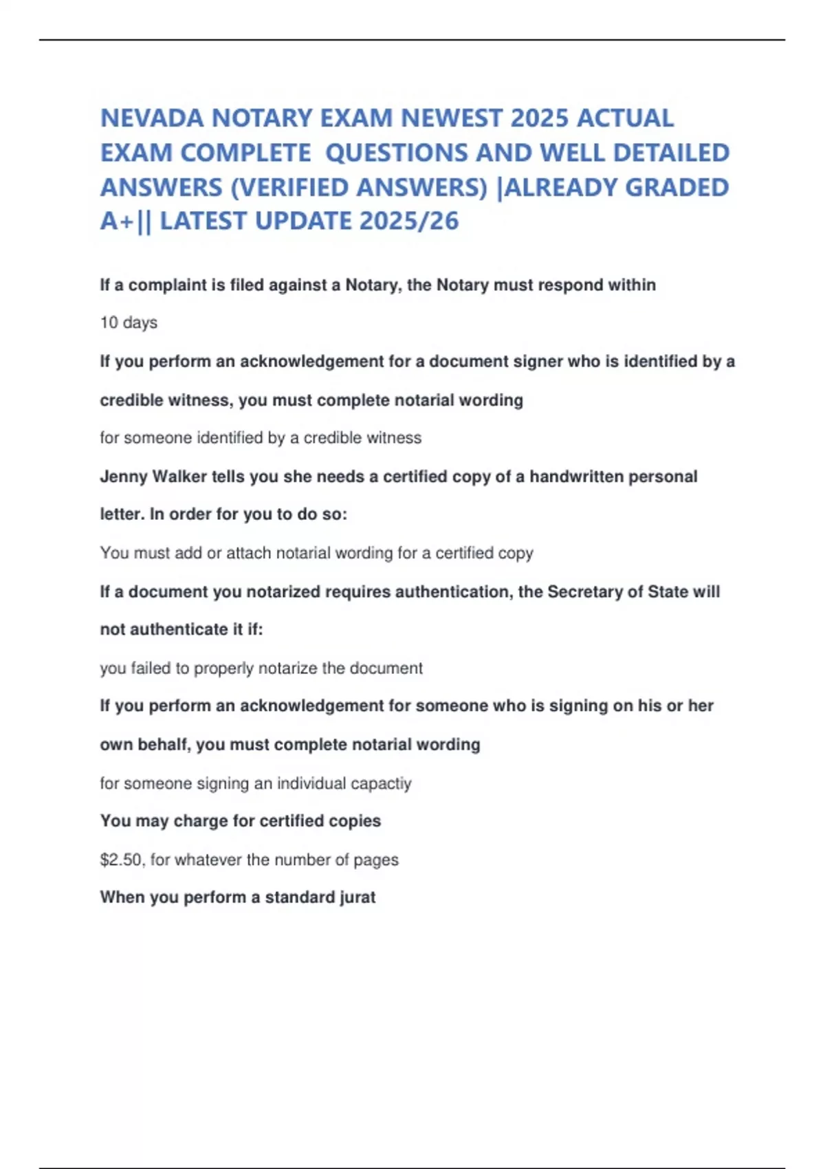 NEVADA NOTARY EXAM NEWEST 2025 ACTUAL