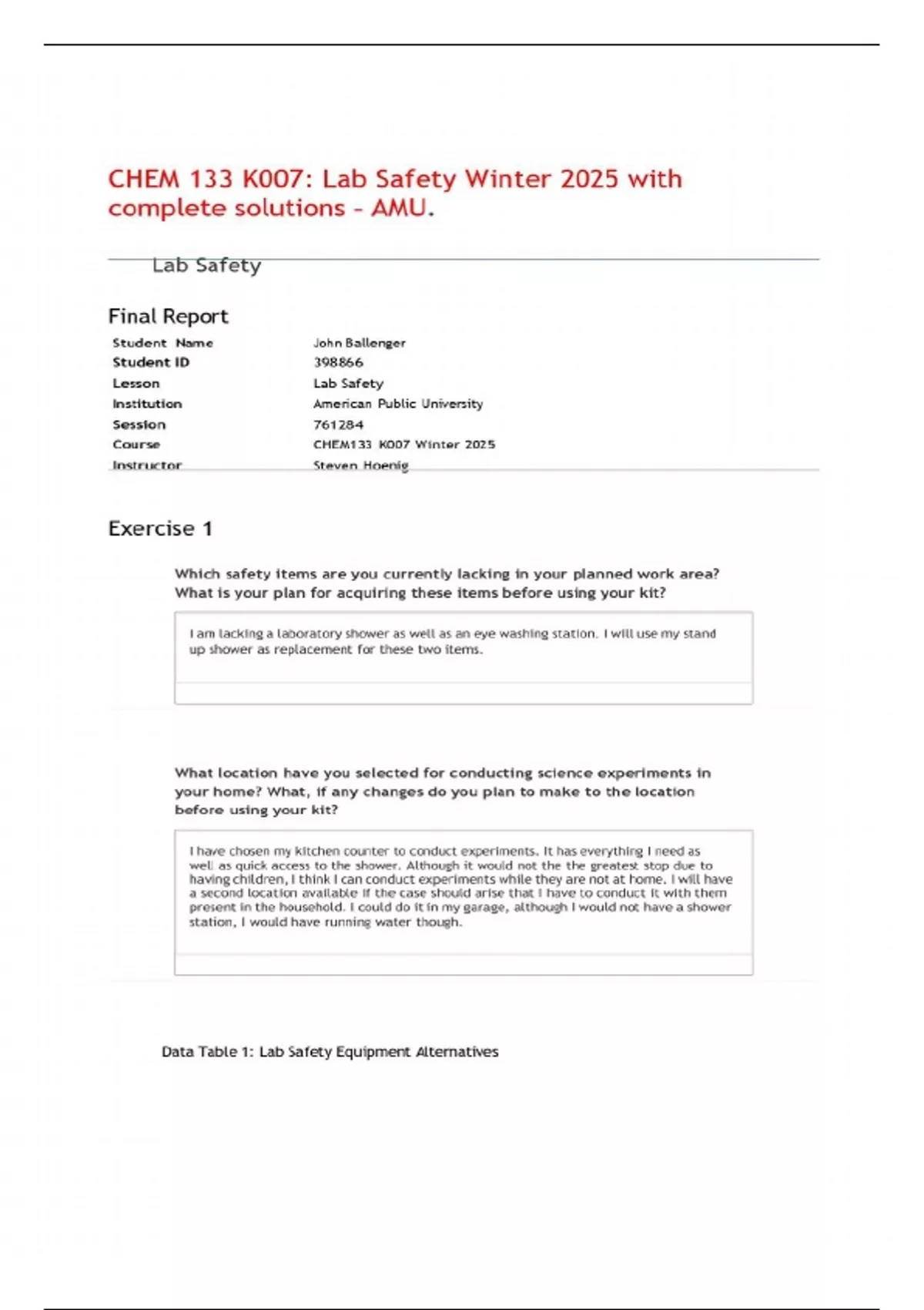 CHEM 133 K007: Lab Safety Winter 2025 with complete solutions – AMU.