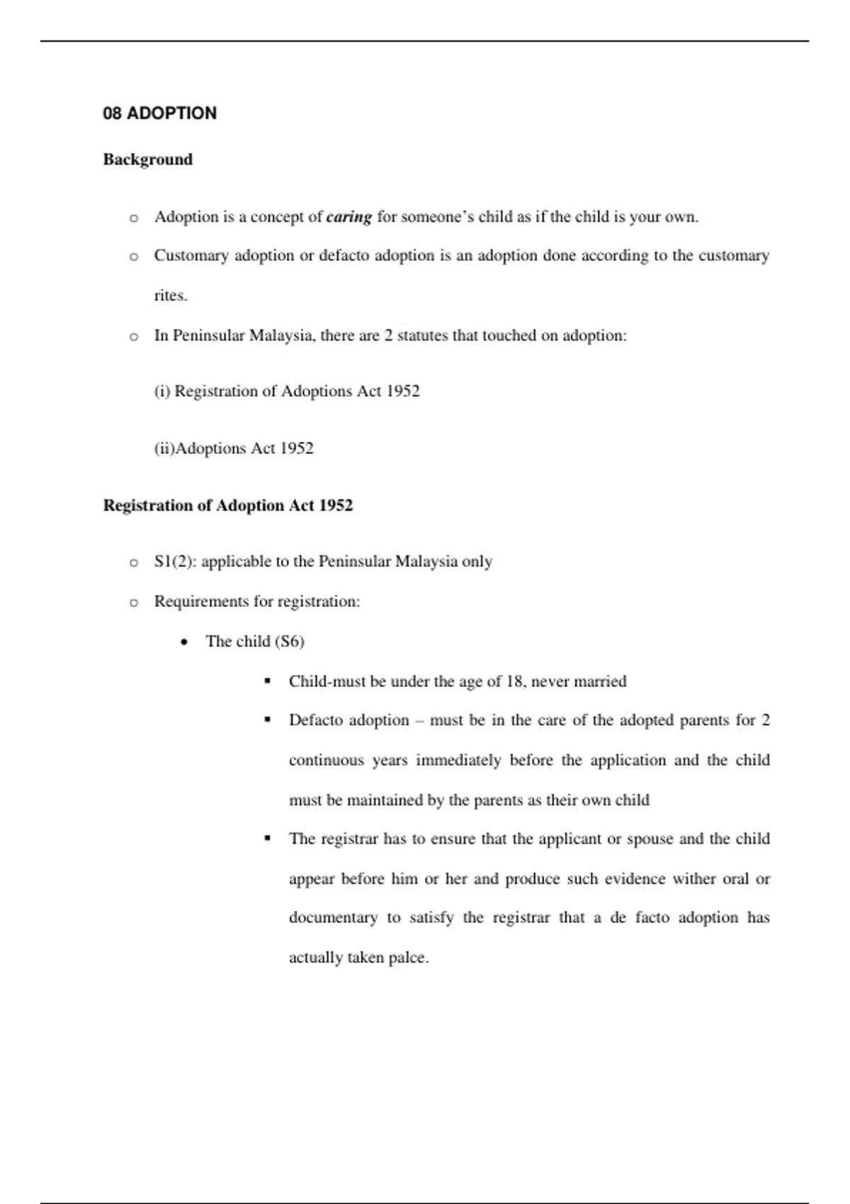 o In Peninsular Malaysia, there are 2 statutes that touched on adoption: