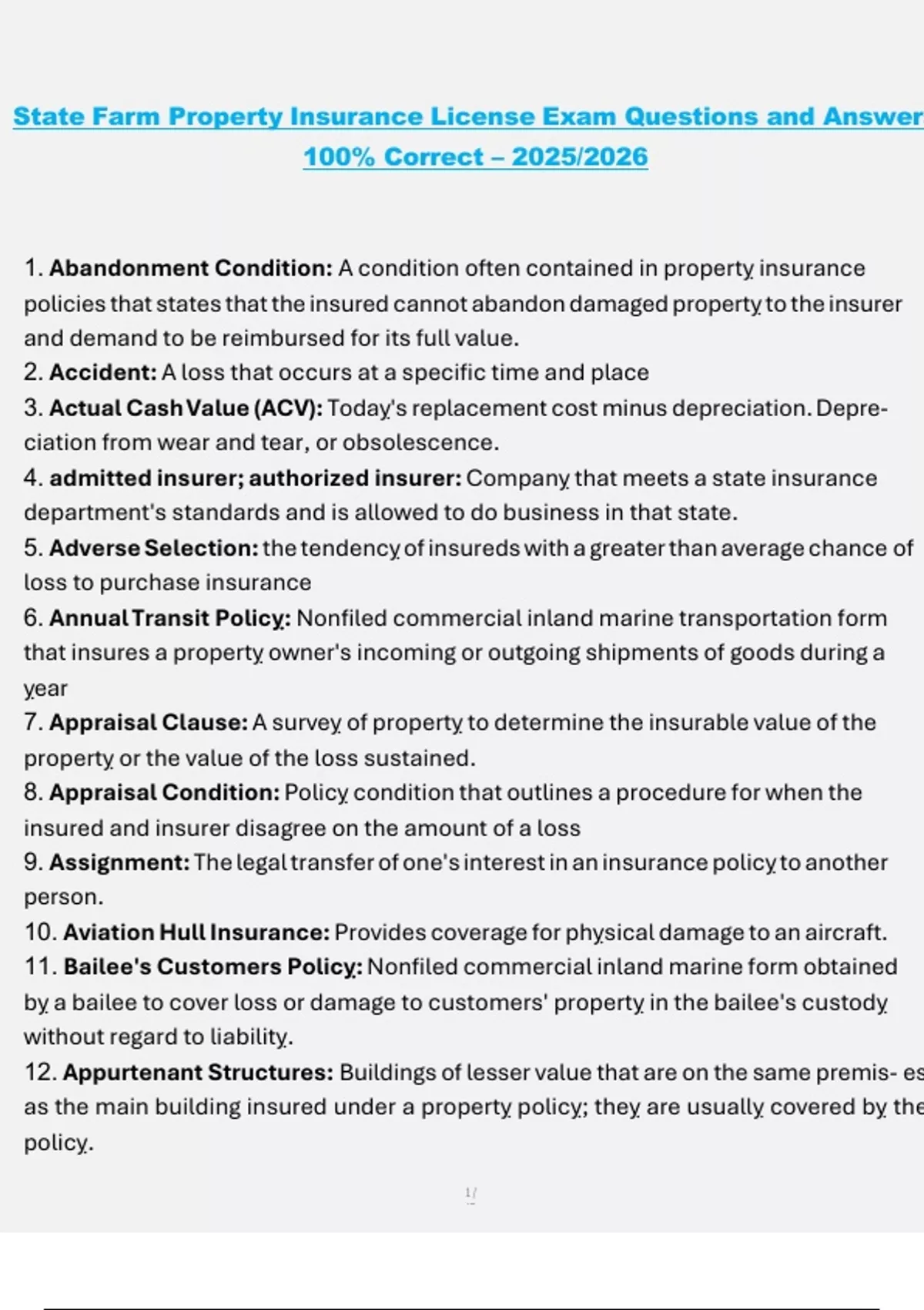 7. Appraisal Clause: A surveỵ of propertỵ to determine the insurable value of the