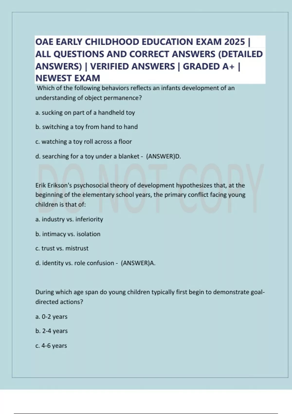 OAE EARLY CHILDHOOD EDUCATION EXAM 2025 |