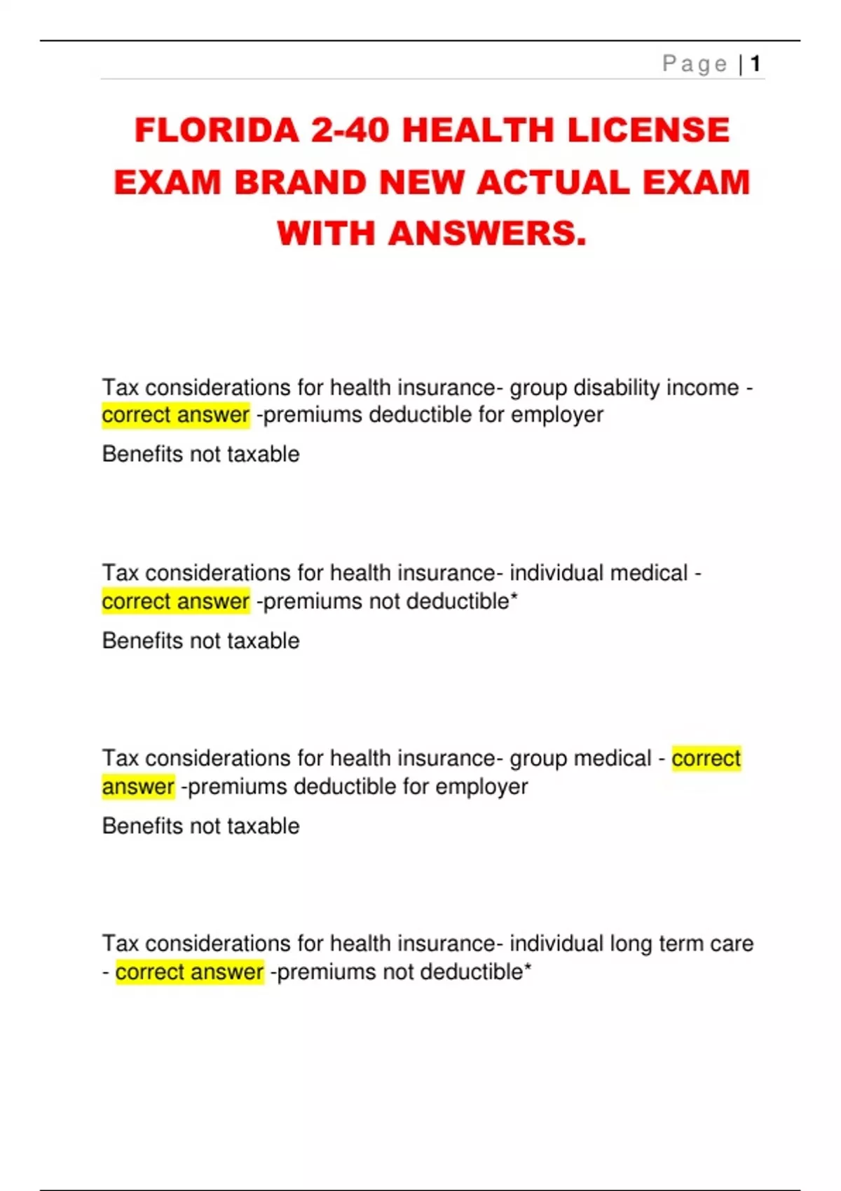 supplement - correct answer -premiums deductible for employer