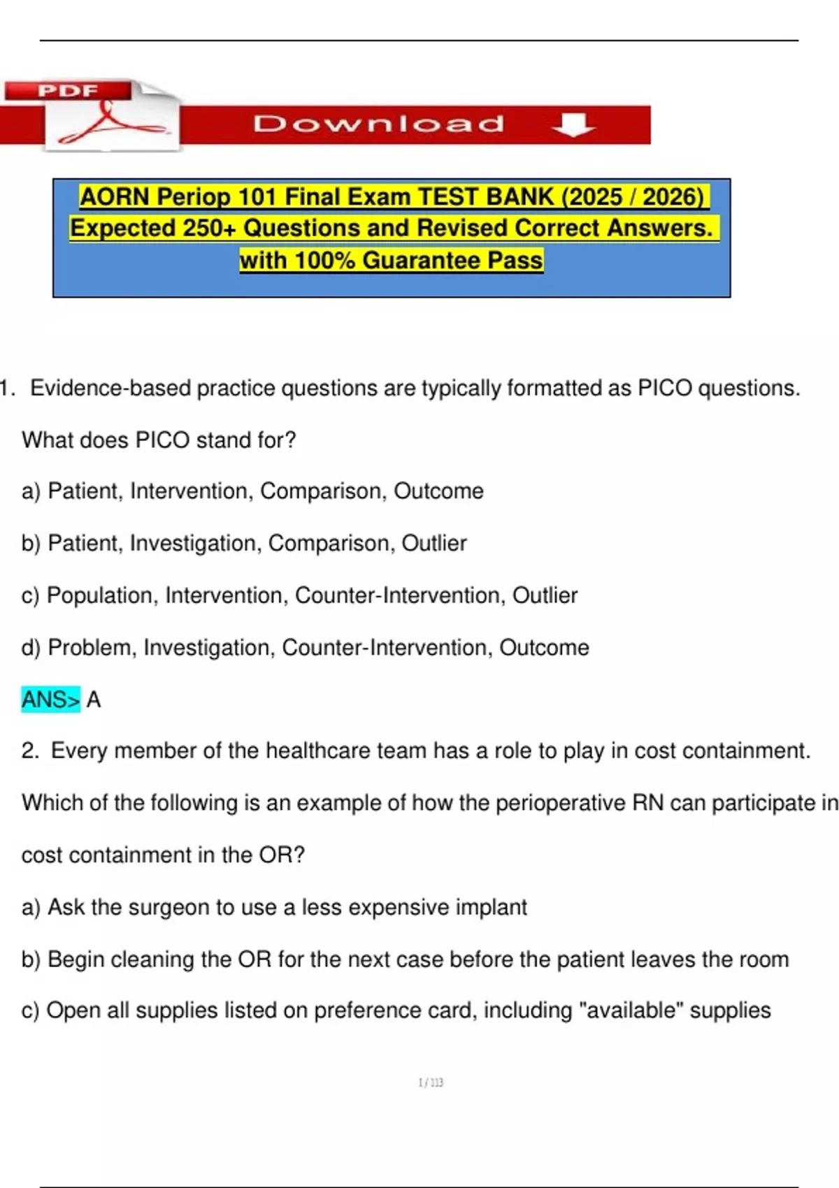 AORN Periop 101 Final Exam TEST BANK (2025 / 2026) Expected 250+ Questions and Revised Correct Answers. with 100% Guarantee Pass